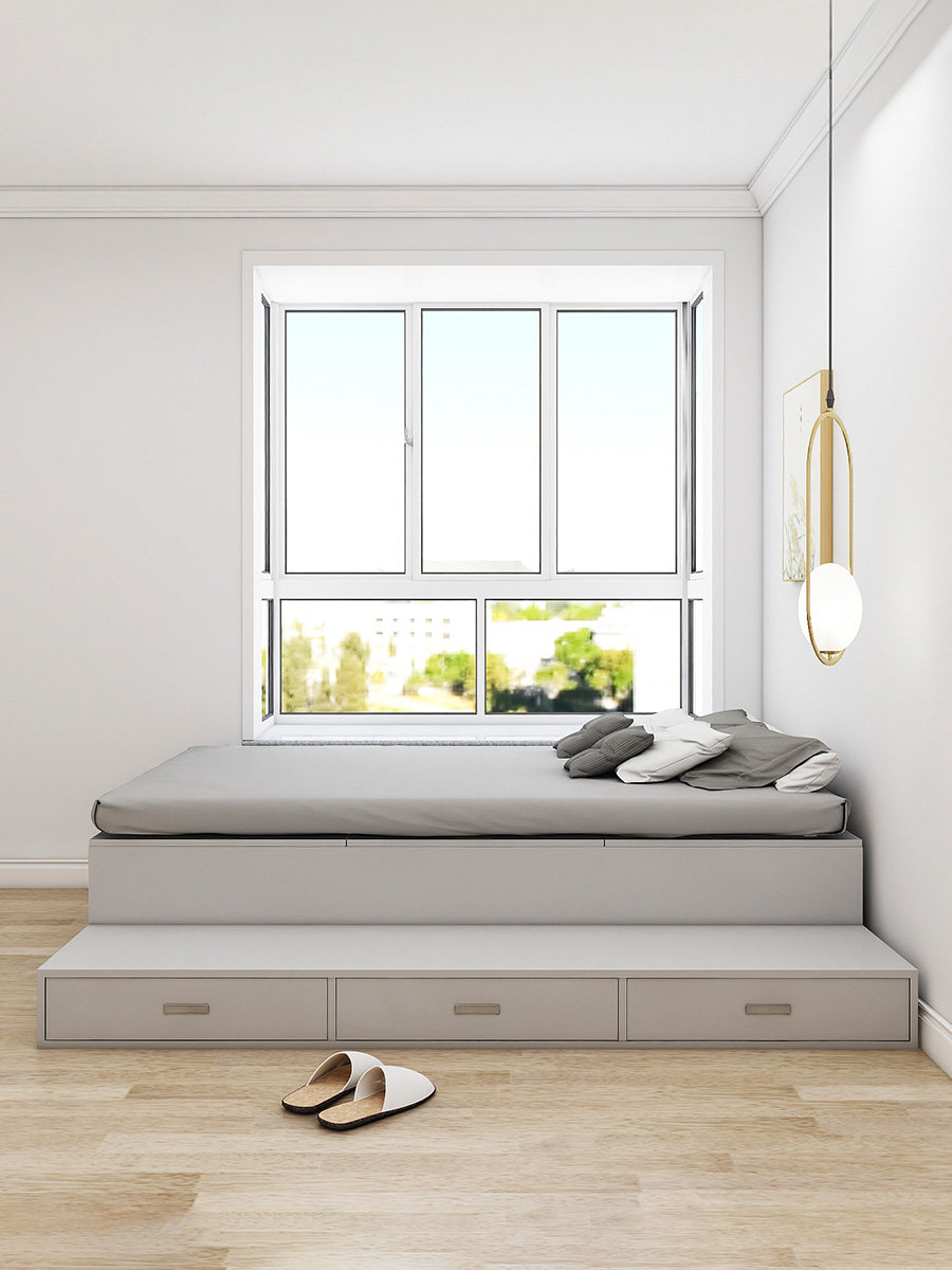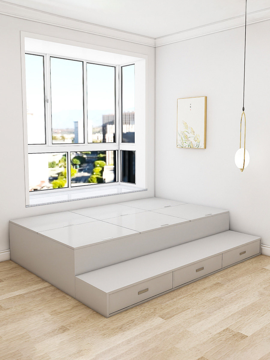 Индивидуальная современная минималистская кровать с высоким содержанием кровати для хранения кровати кровать давление на пол кровать для кровати маленькая квартира приземляется односпальная кровать Tatami