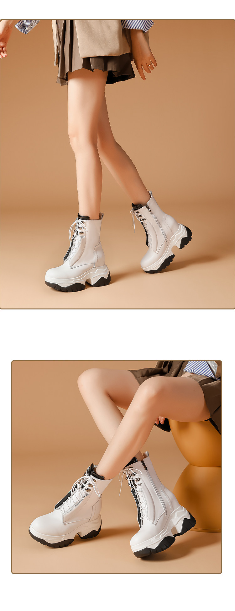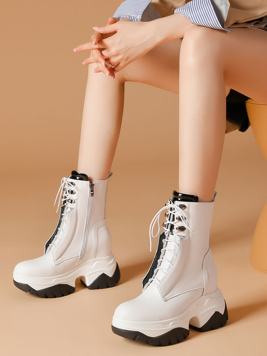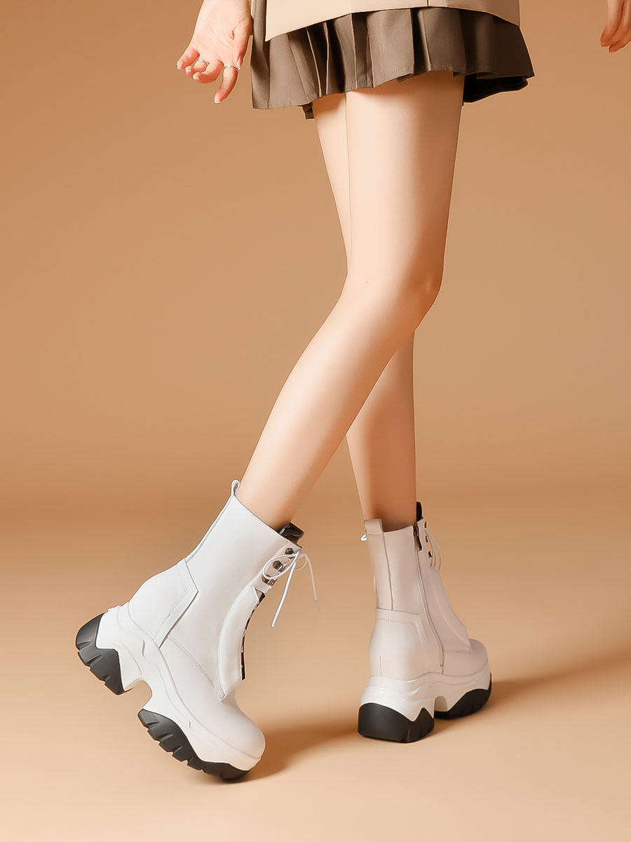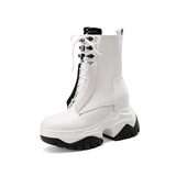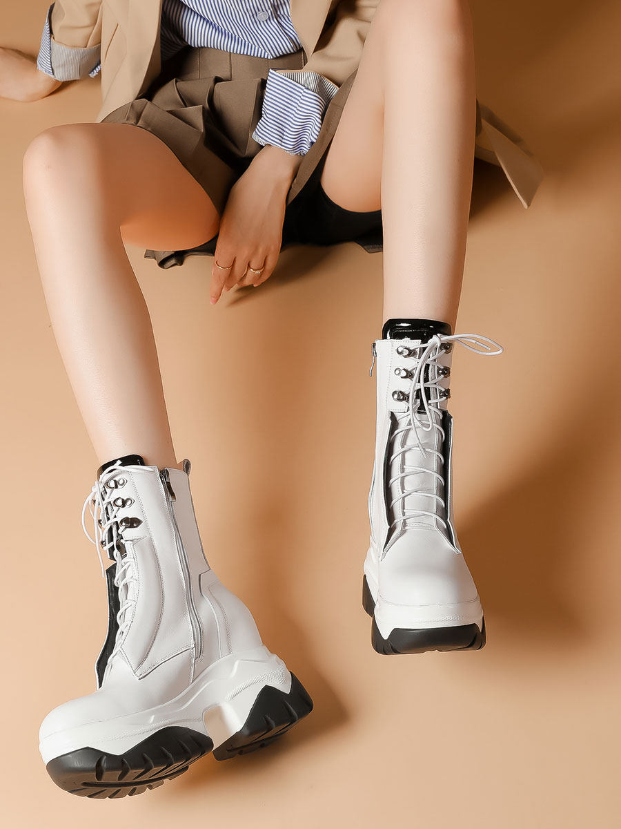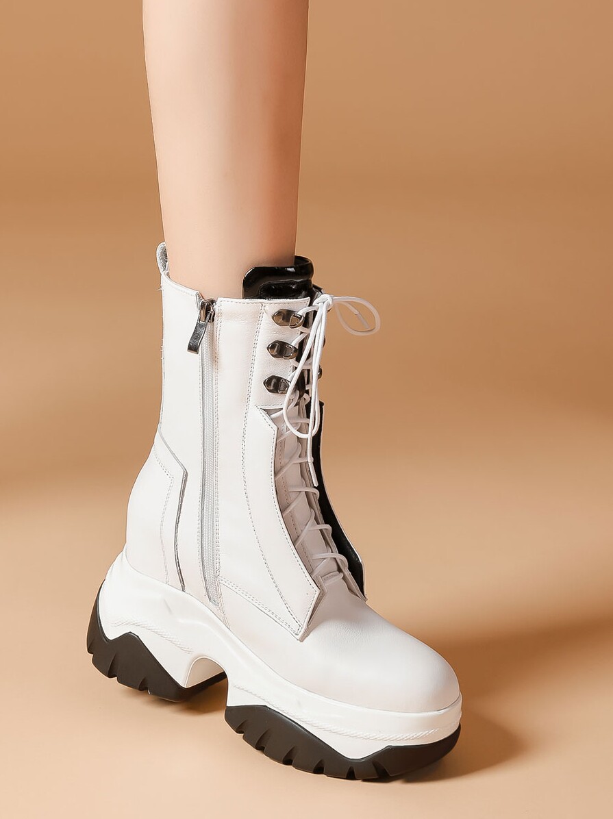 Martens, белые кожаные высокие короткие сапоги на платформе, из натуральной кожи, 10см