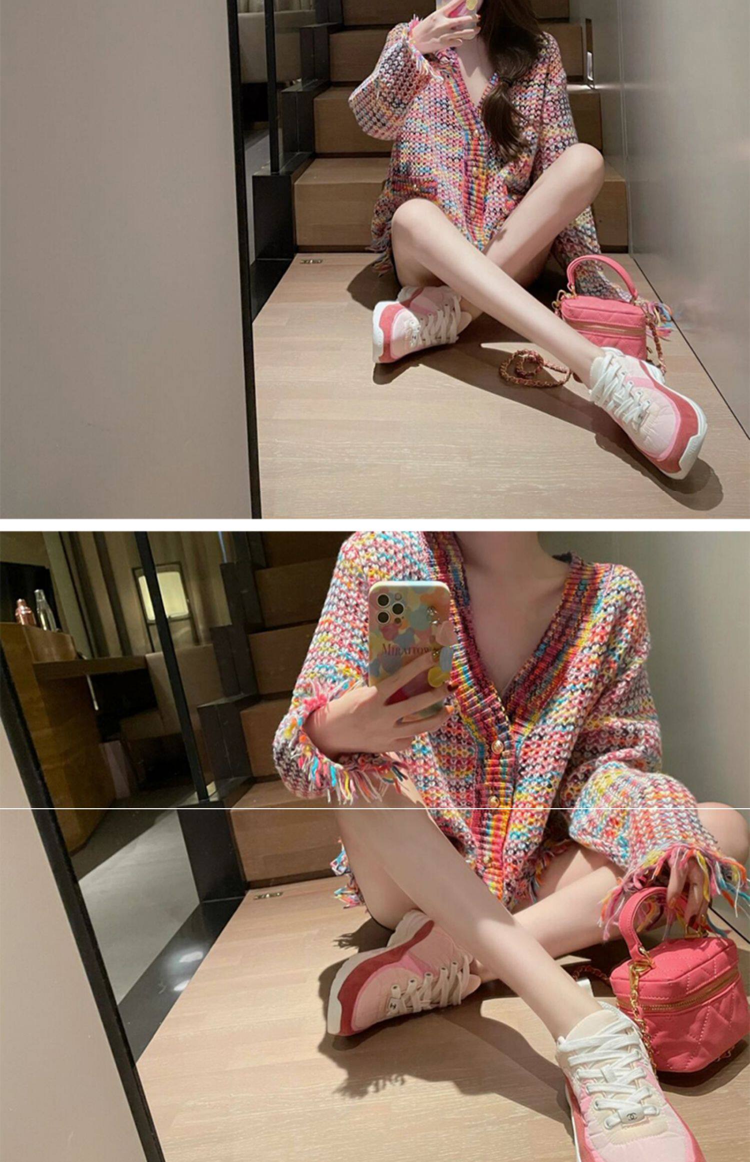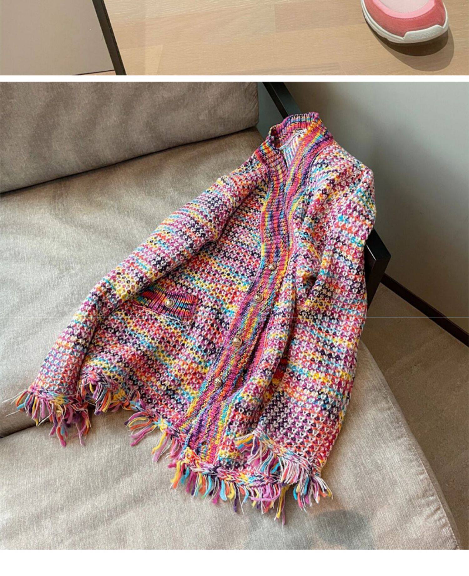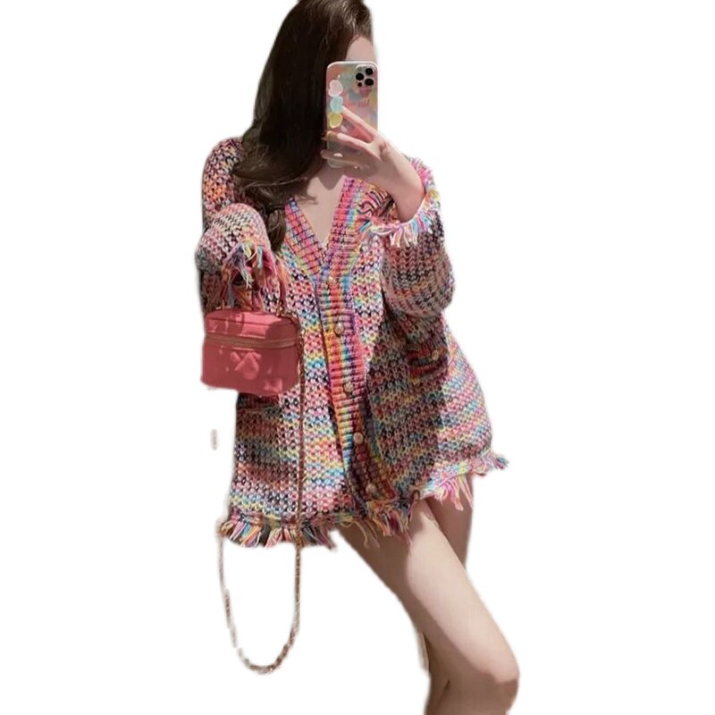 Осенняя плетеная трикотажная дизайнерская куртка, свитер, кардиган, французский стиль, в стиле Шанель, тренд сезона