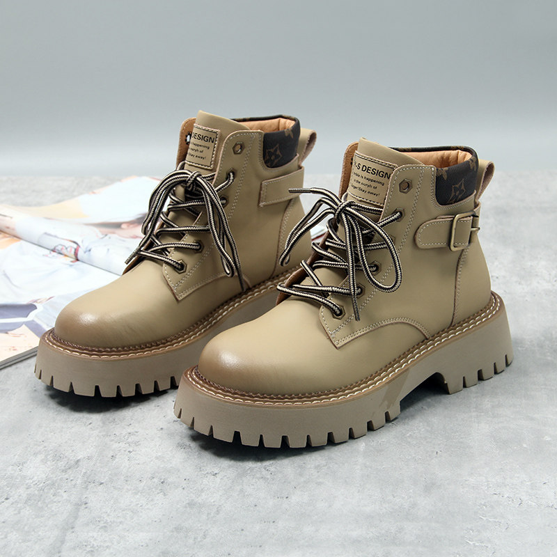 Martens, весенние демисезонные короткие сапоги в английском стиле на платформе, коллекция 2022, тренд сезона, в британском стиле, из натуральной кожи