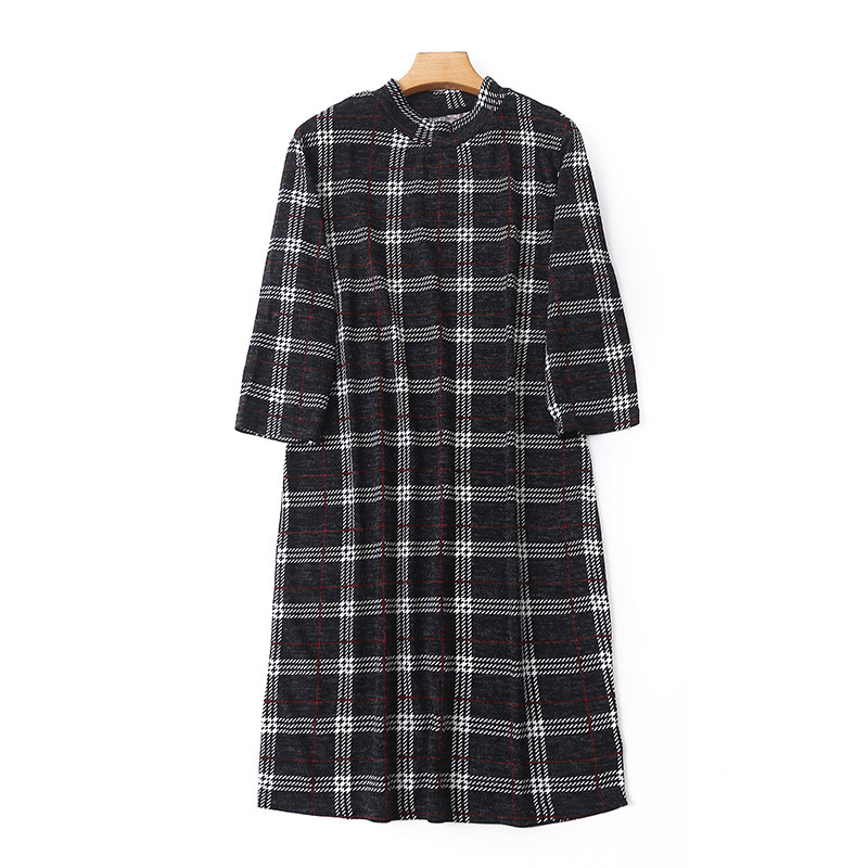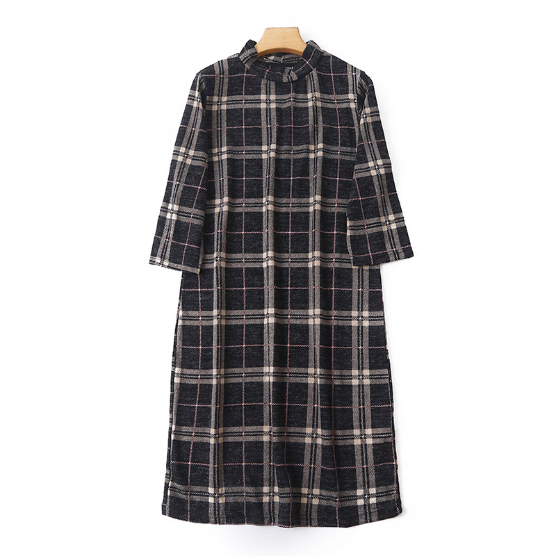 Длинное базовое осеннее платье, высокий воротник, с рукавом, свободный крой