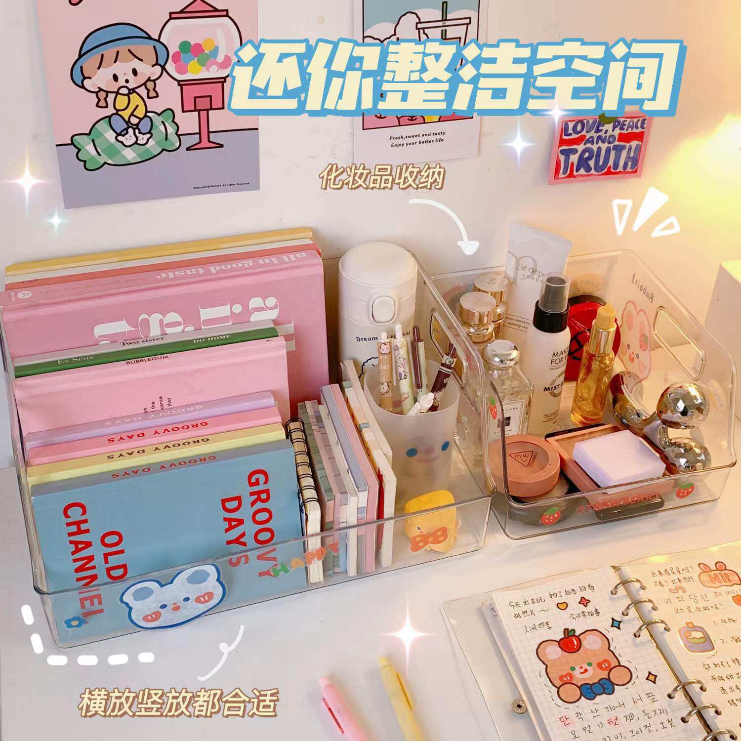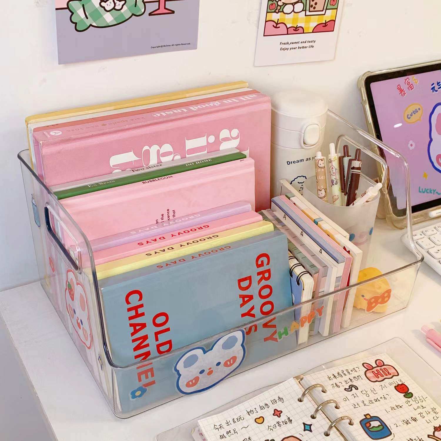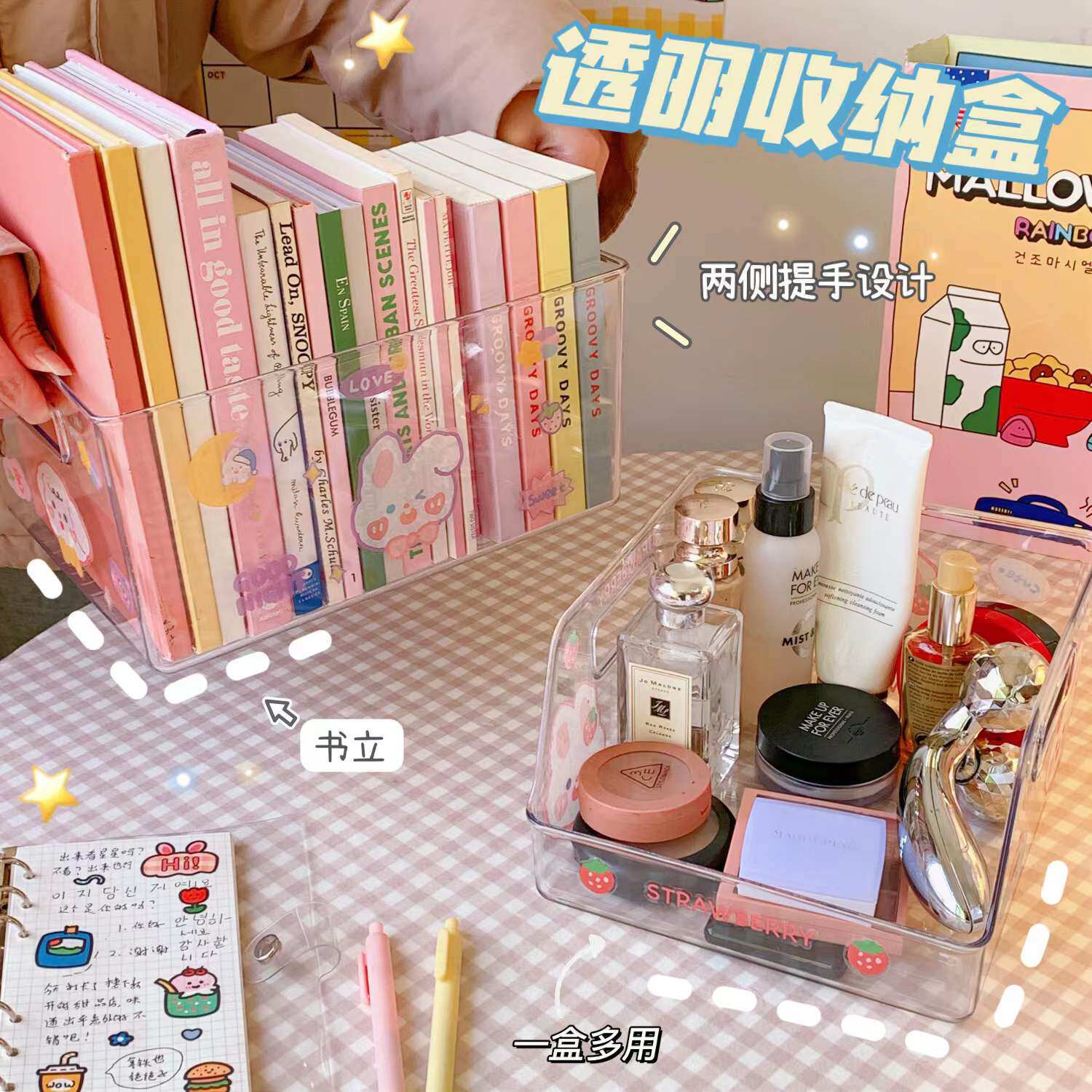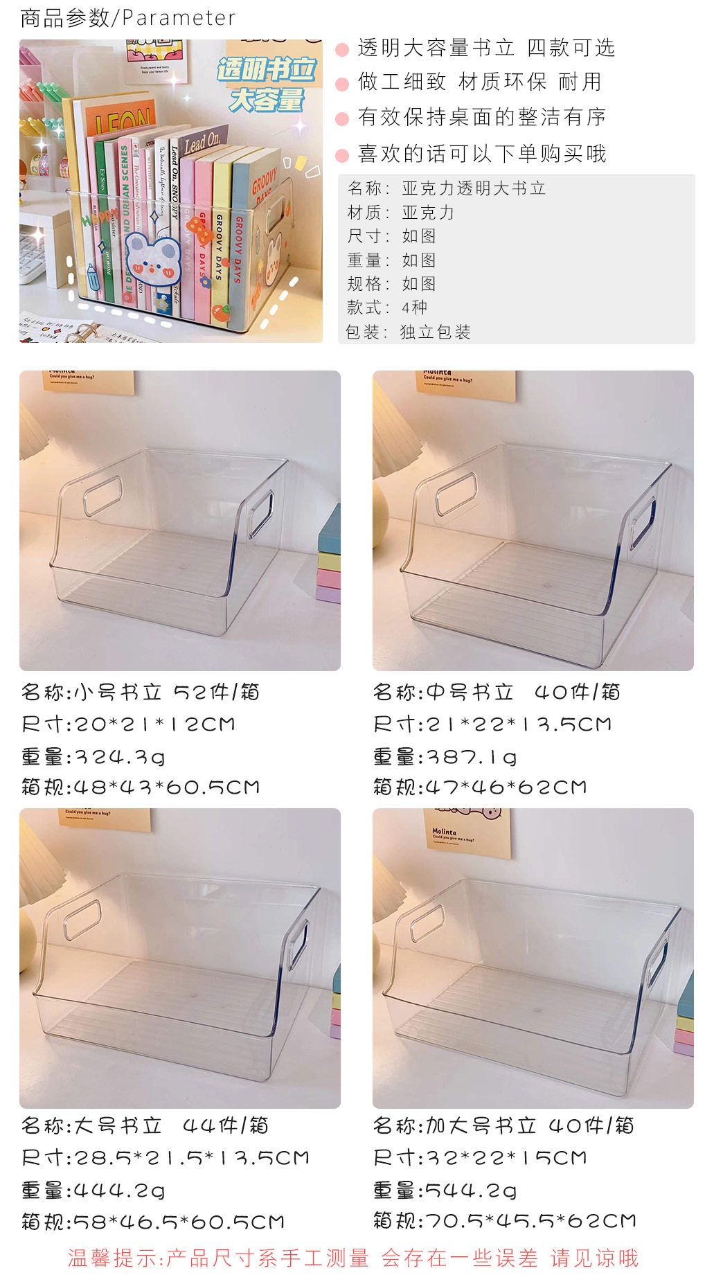 Акриловая прозрачная книга Standing Rack INS Студенческая стола с большим -запасной ящик для хранения