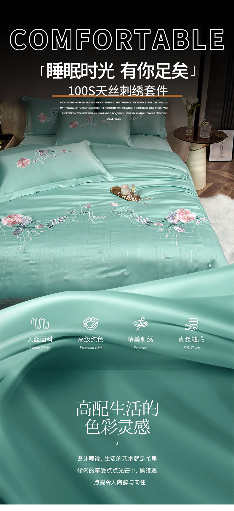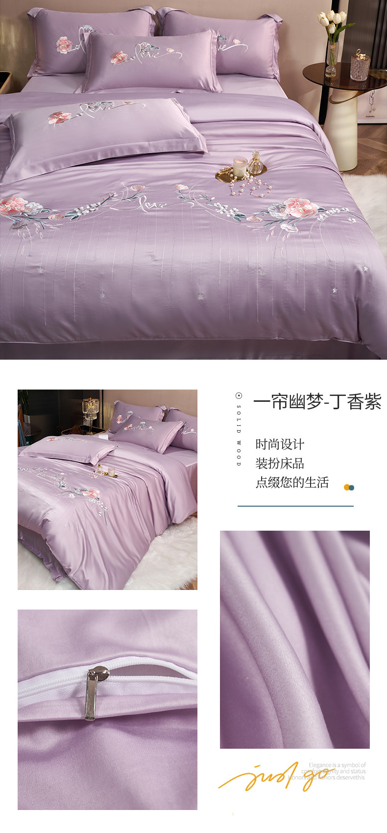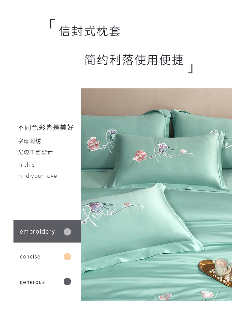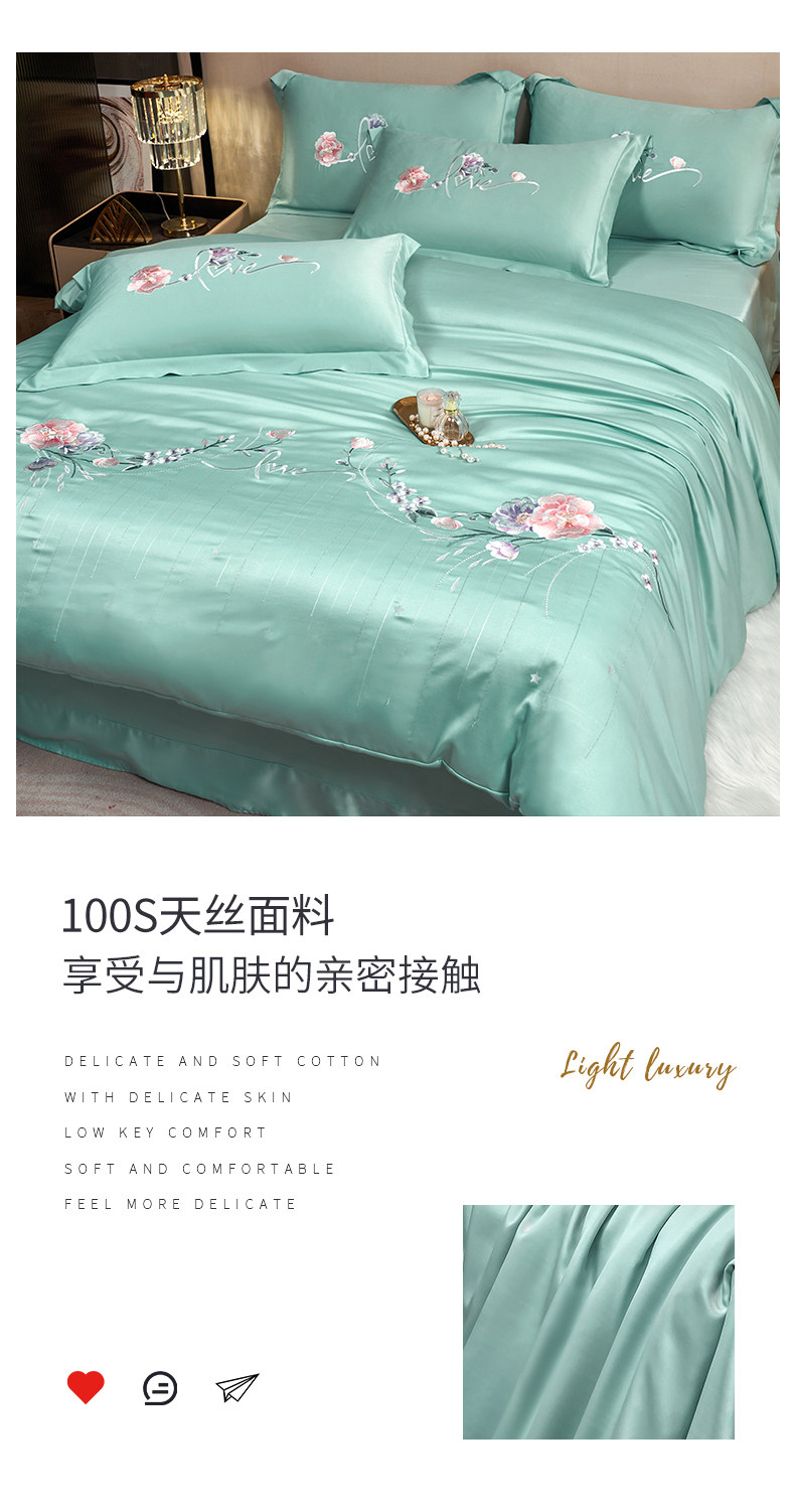 Комплект, шелковый пододеяльник, простыня, с вышивкой, 4 предмета, легкий роскошный стиль, изысканный стиль, 3 предмета