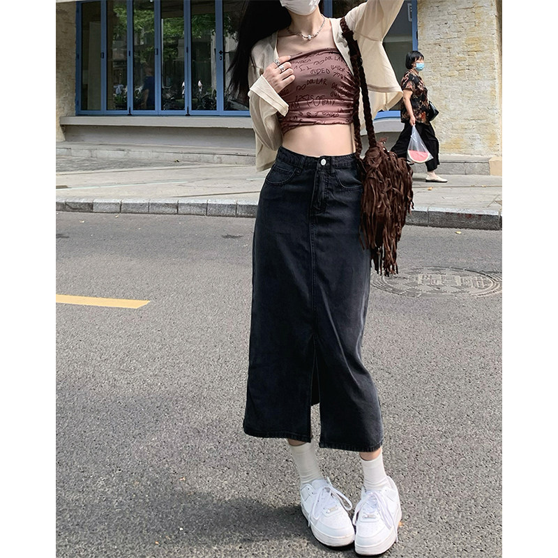 Приталенная осенняя длинная джинсовая юбка, большой размер, высокая талия, А-силуэт