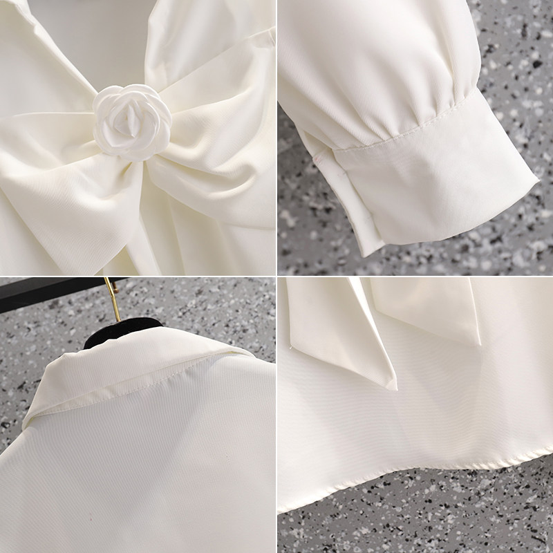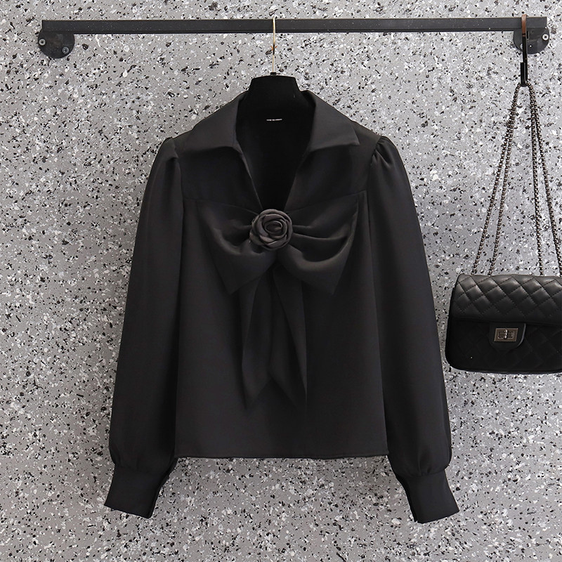Цветная модная дизайнерская рубашка с бантиком, осенняя, V-образный вырез, большой размер