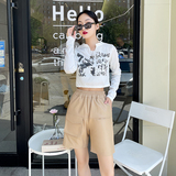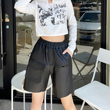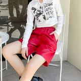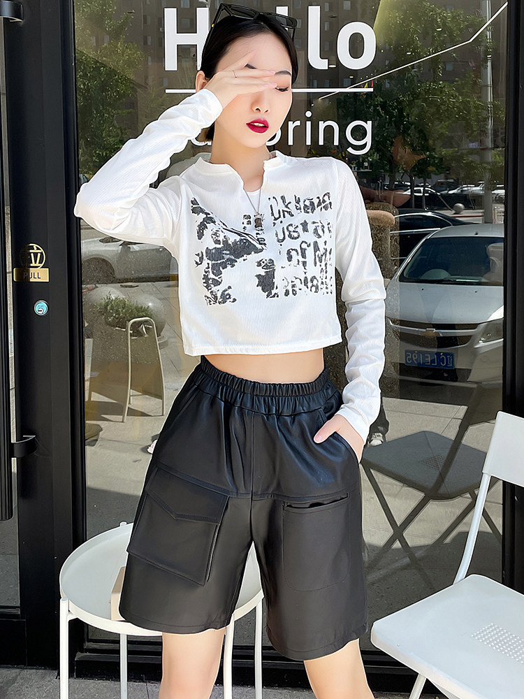 Штаны, асимметричные модные шорты, из натуральной кожи, высокая талия