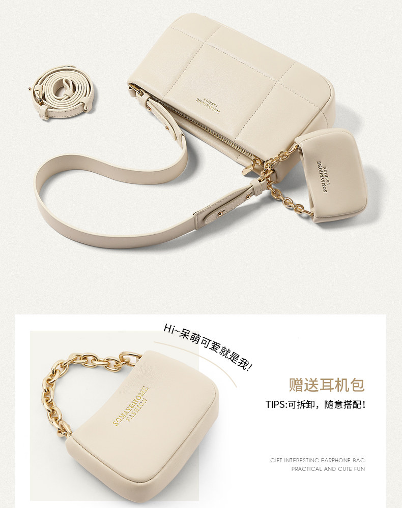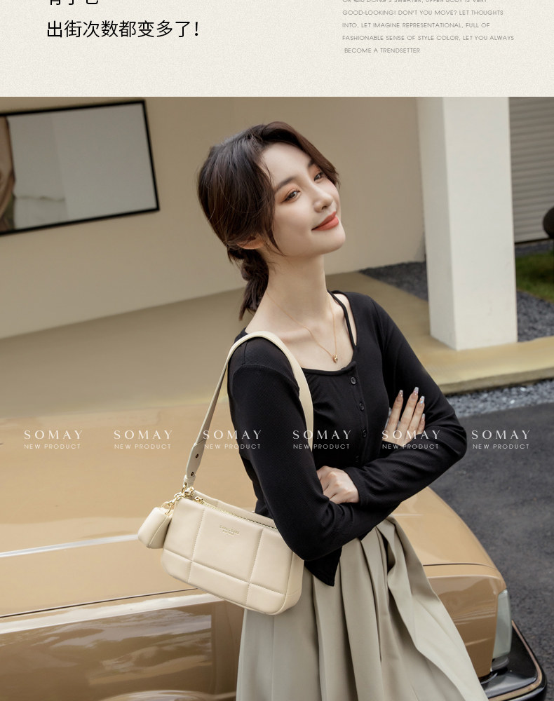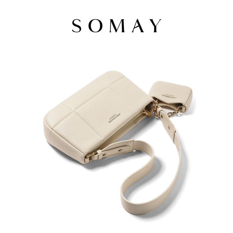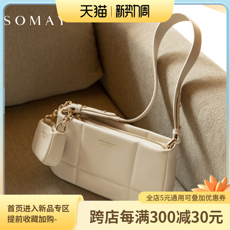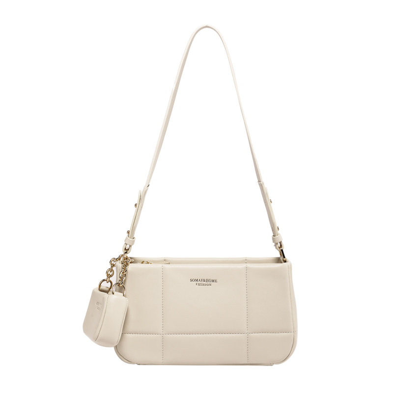 Сумка подмышку, демисезонная белая сумка на одно плечо с ромбовидным узором, коллекция 2023