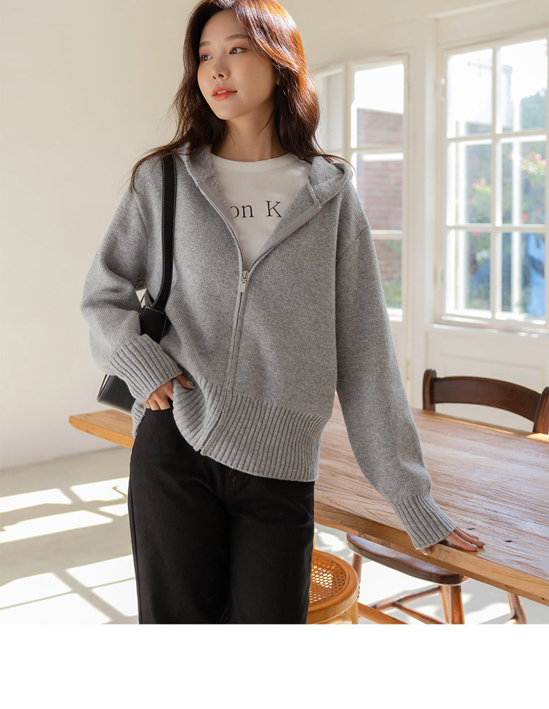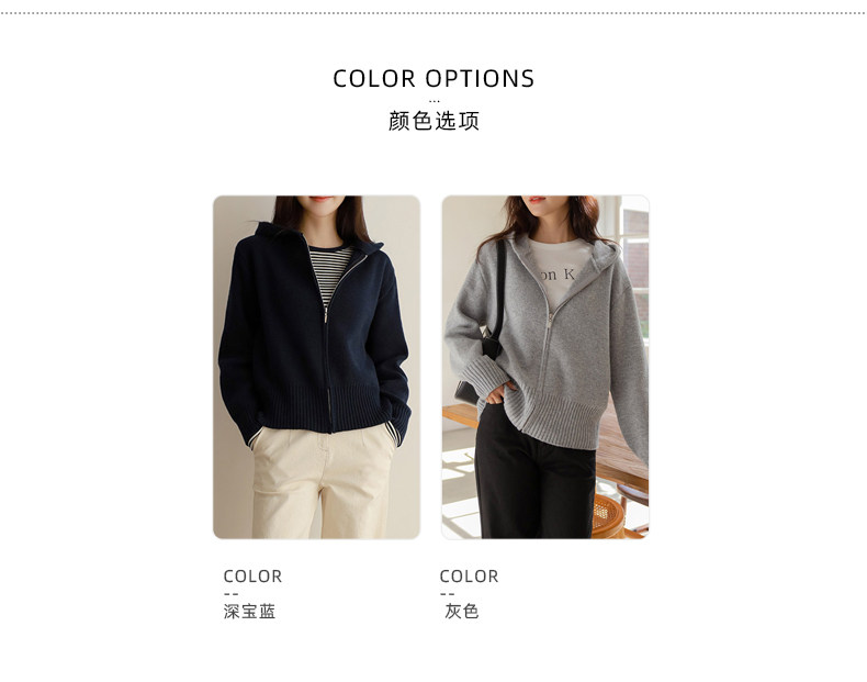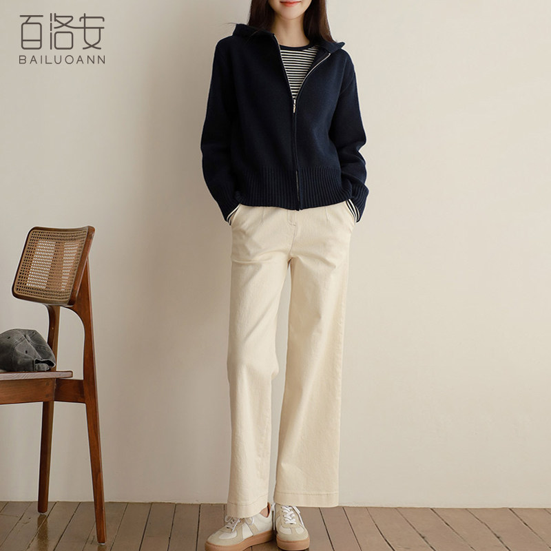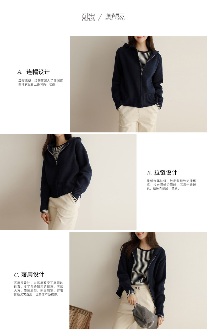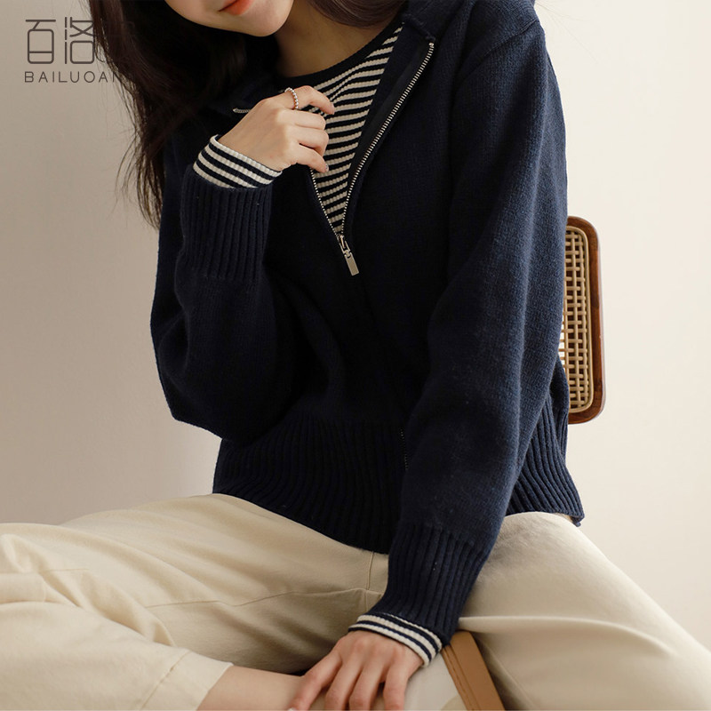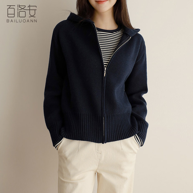 百洛安 Трикотажный свитер с капюшоном с молнией, осенний кардиган, осенняя куртка, лонгслив, в западном стиле, оверсайз