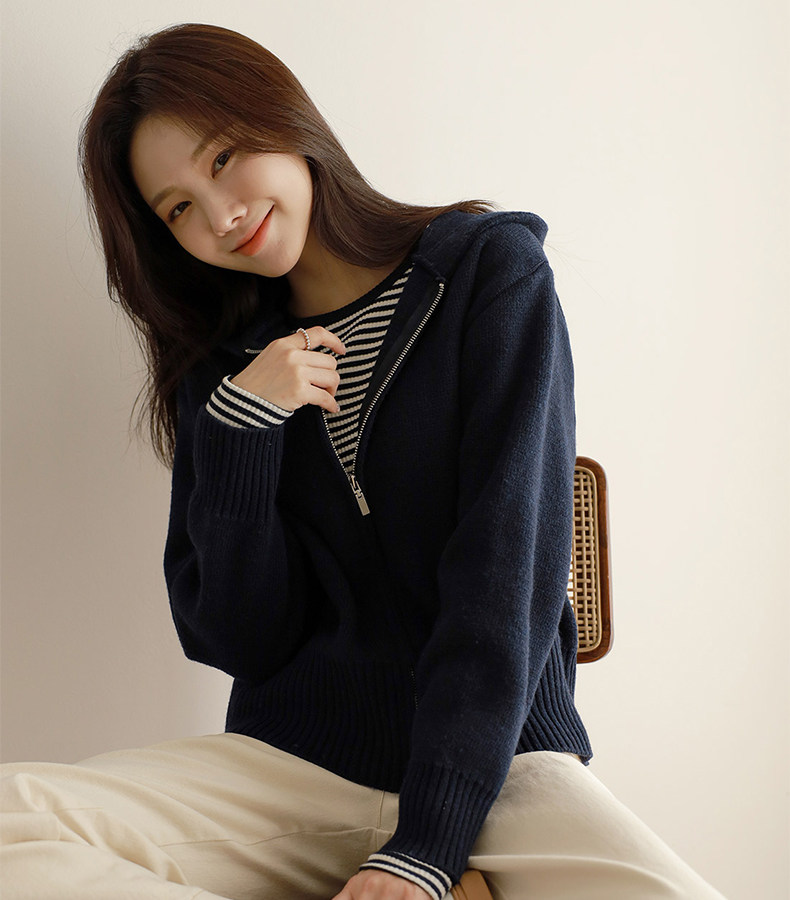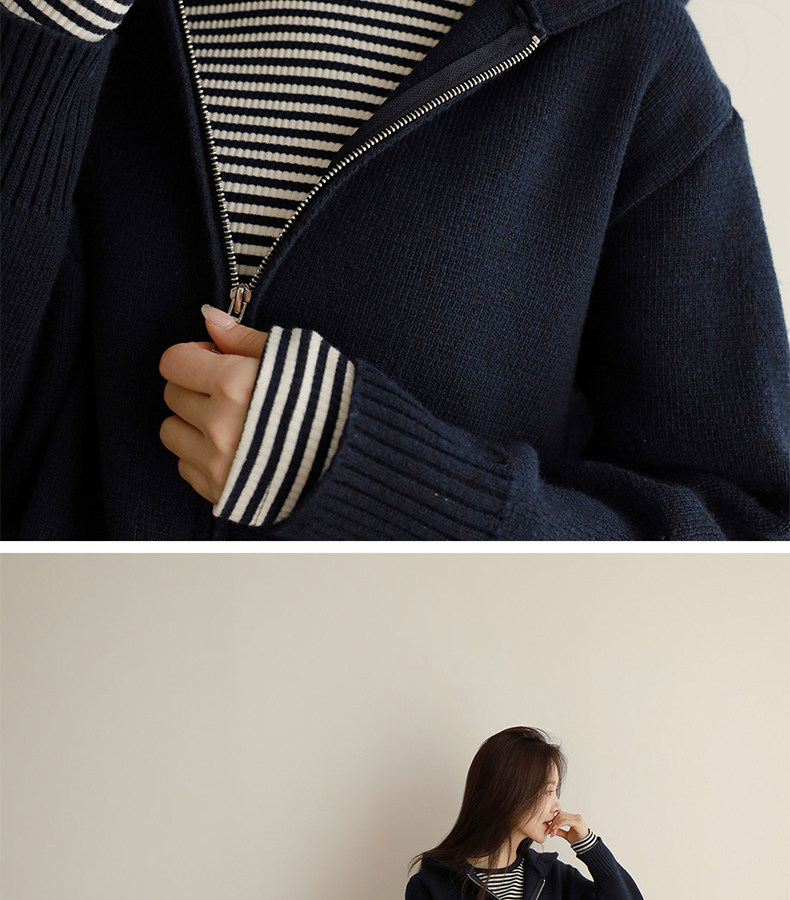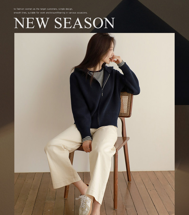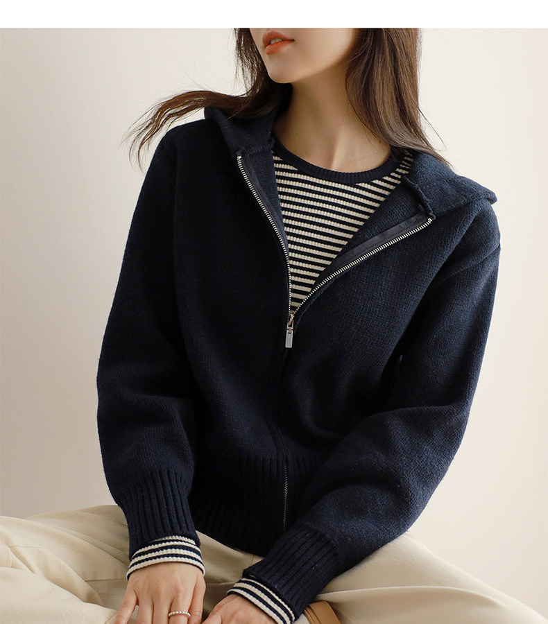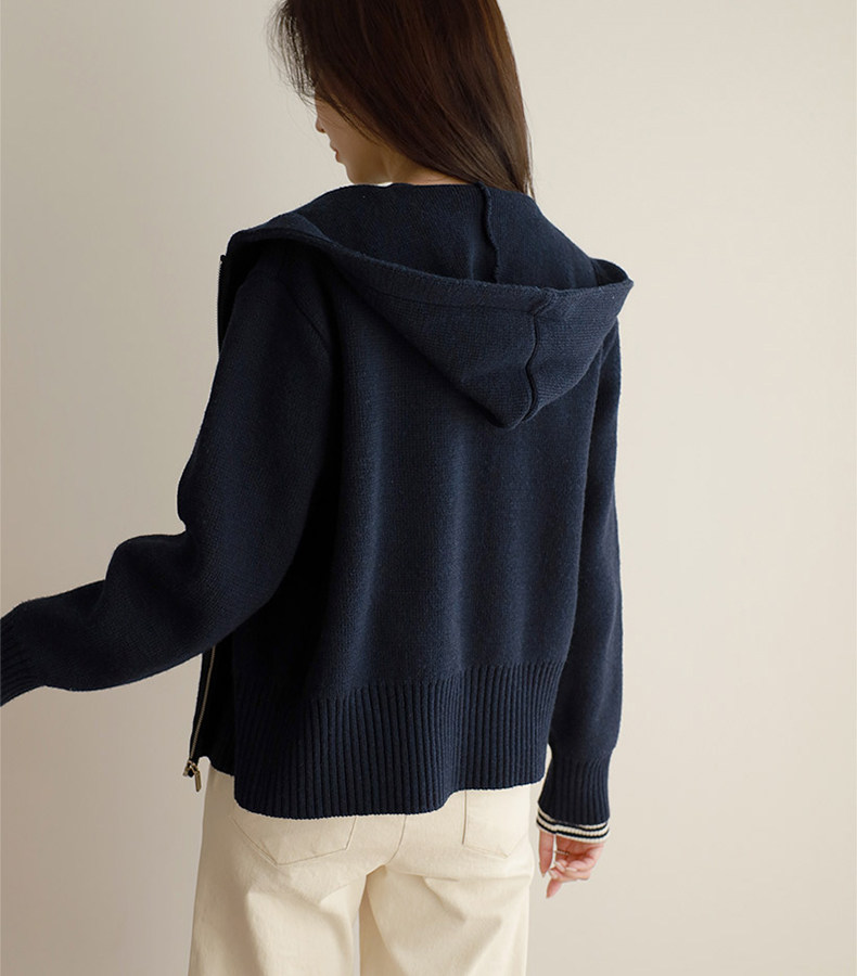 百洛安 Трикотажный свитер с капюшоном с молнией, осенний кардиган, осенняя куртка, лонгслив, в западном стиле, оверсайз