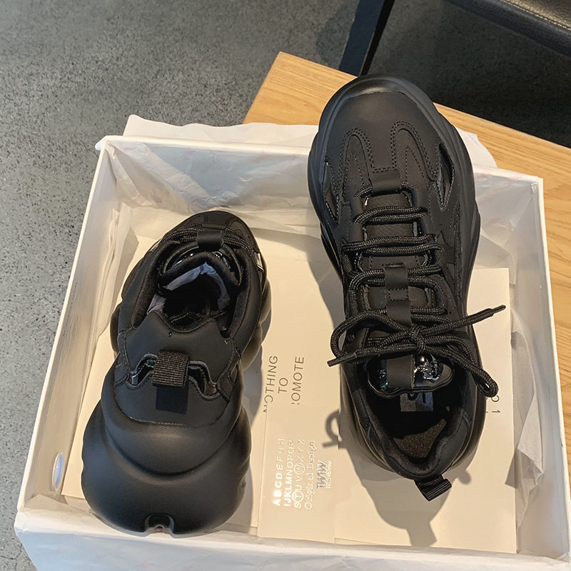 Натуральная черная женская обувь для папы, новинка 2021 года, осень и зима, модная универсальная легкая повседневная спортивная обувь на толстой подошве