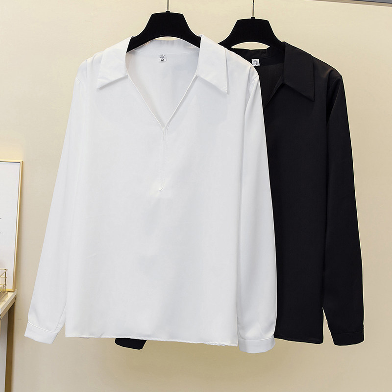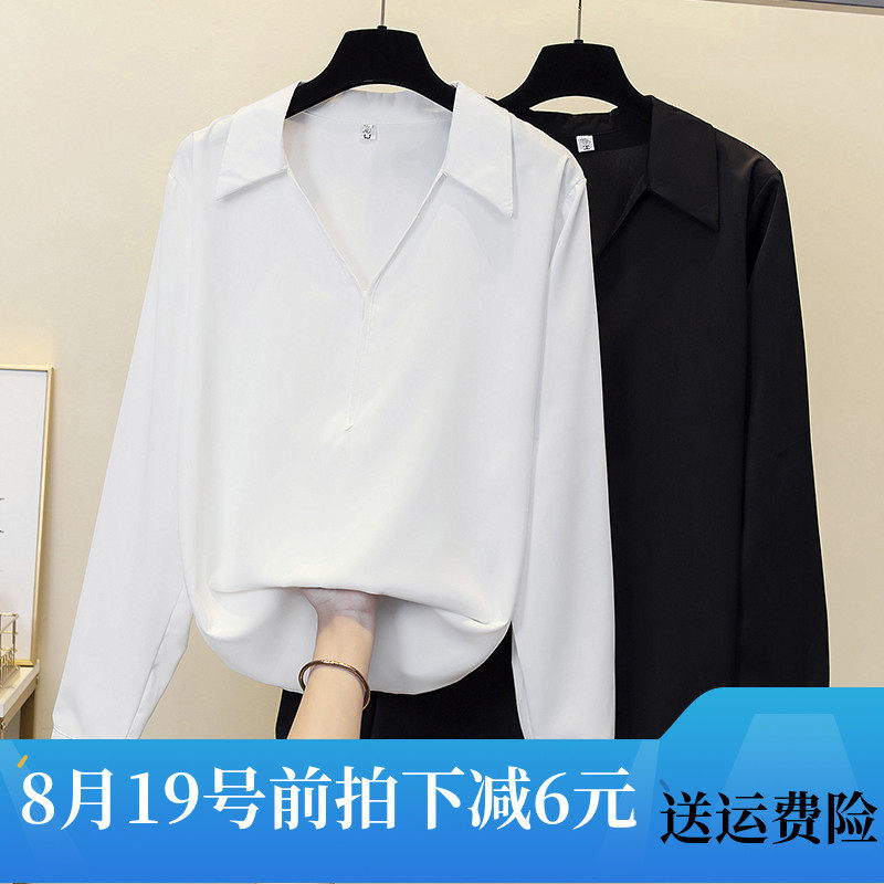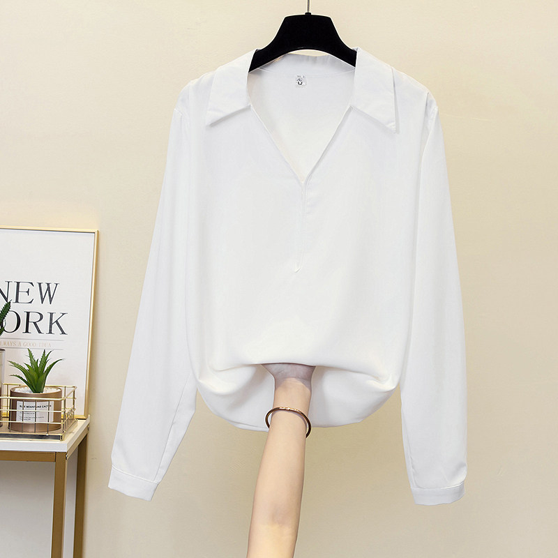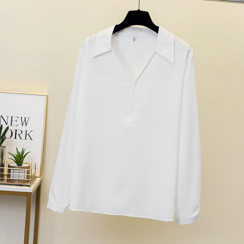 Шифоновая цветная рубашка, свободный крой, коллекция 2022, осенняя, большой размер, V-образный вырез