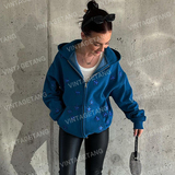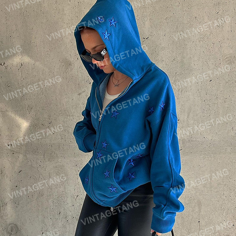 Ретро синяя утепленная толстовка, куртка, кардиган, в американском стиле, с вышивкой