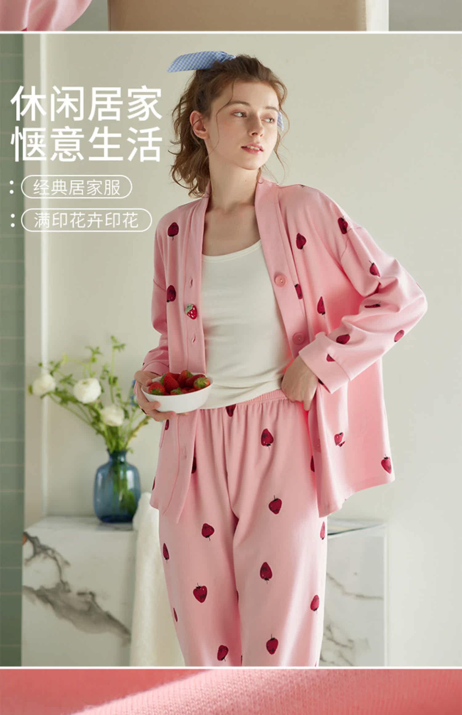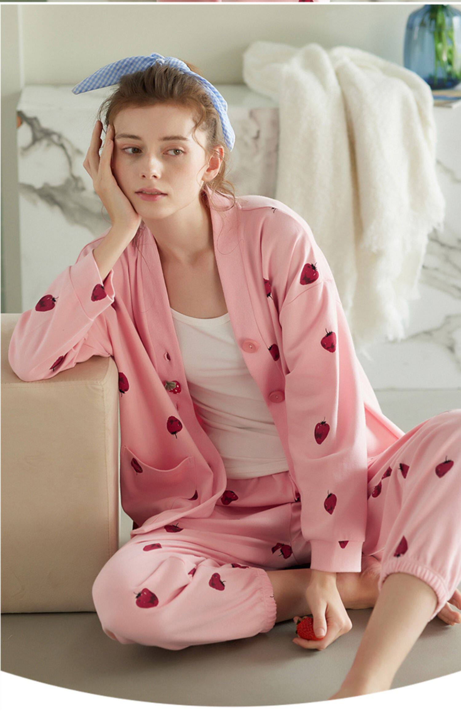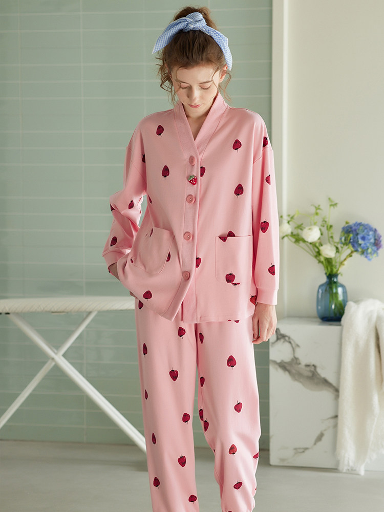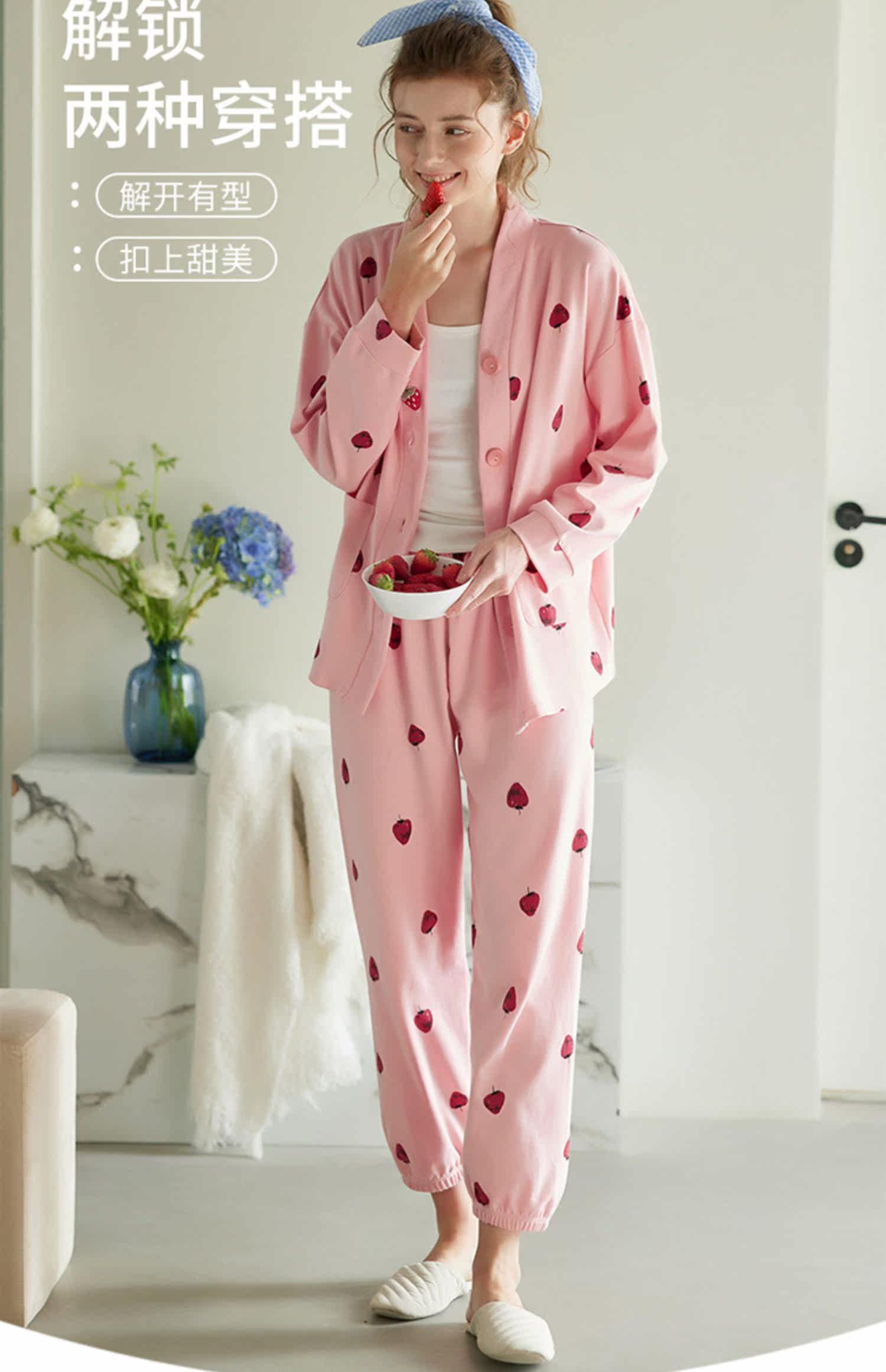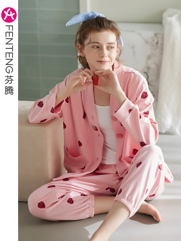 芬腾 Демисезонная осенняя пижама, хлопковый лонгслив, кардиган, хлопковая рубашка, модный комплект