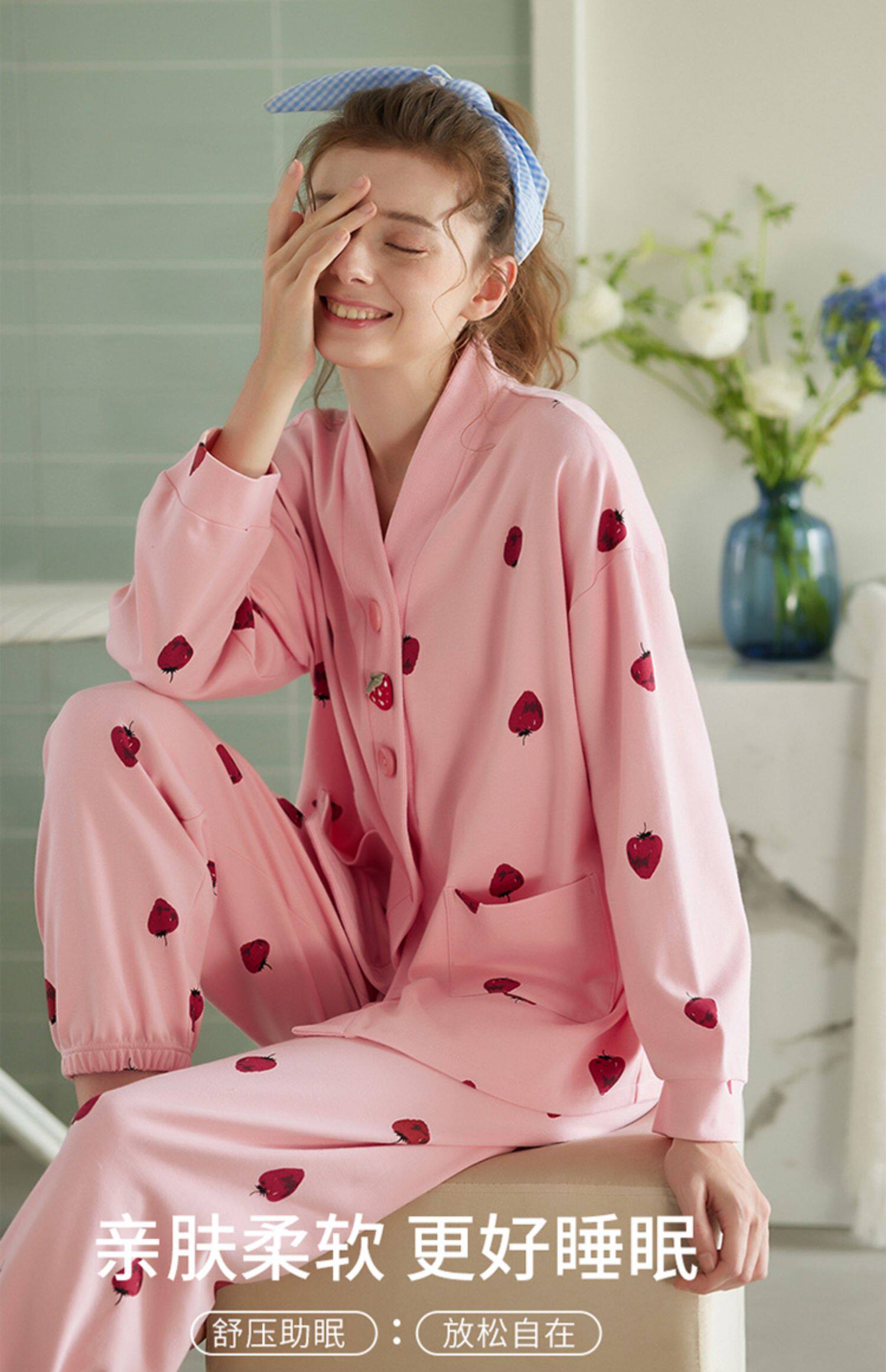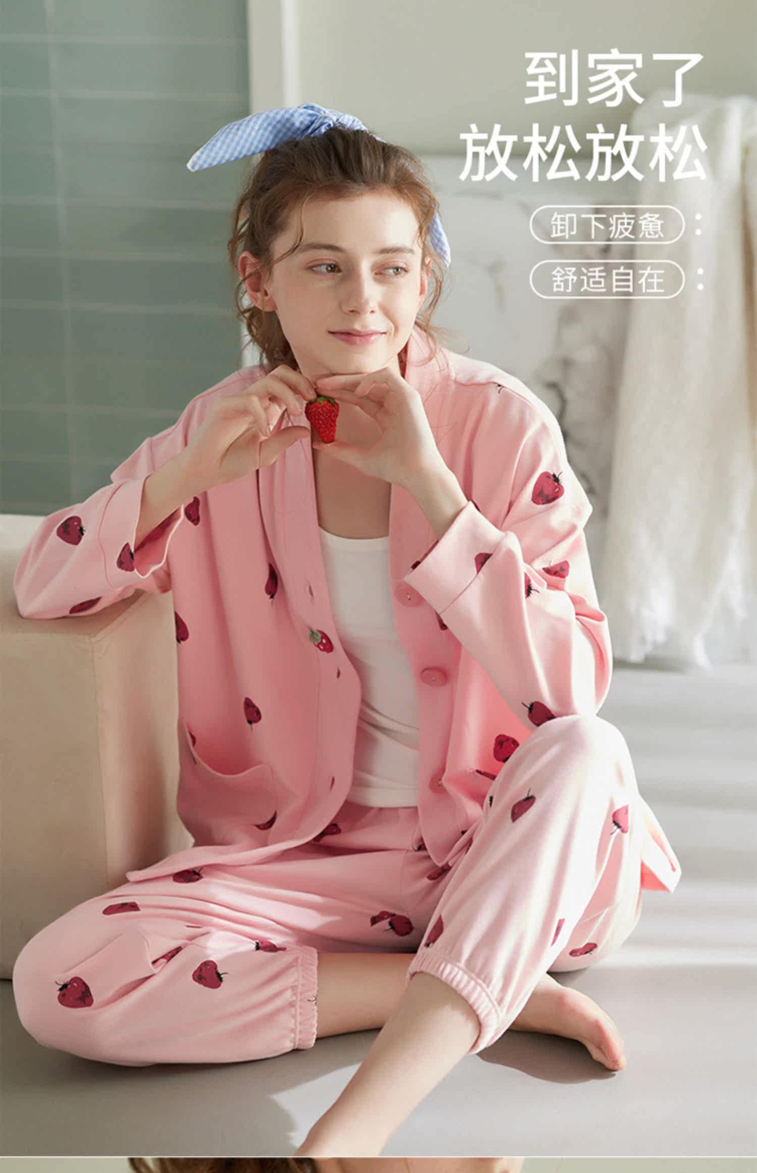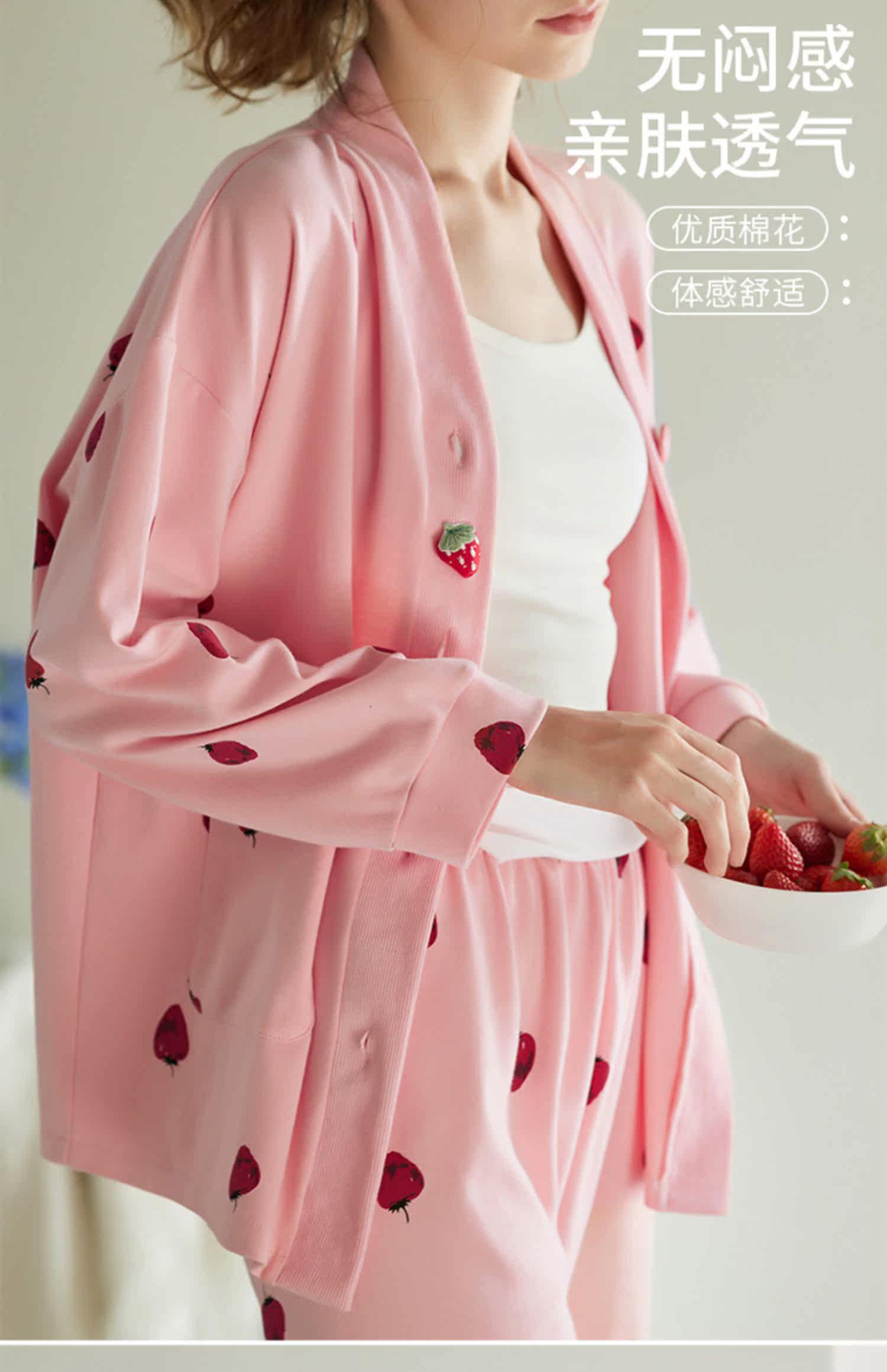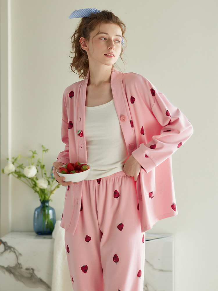芬腾 Демисезонная осенняя пижама, хлопковый лонгслив, кардиган, хлопковая рубашка, модный комплект