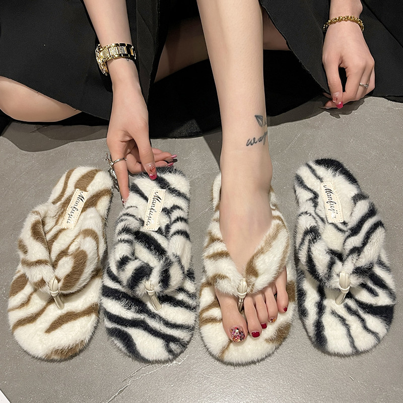 Зебра, щипцы, тапочки, обувь, сланцы, популярно в интернете, коллекция 2022, осенняя, тренд сезона