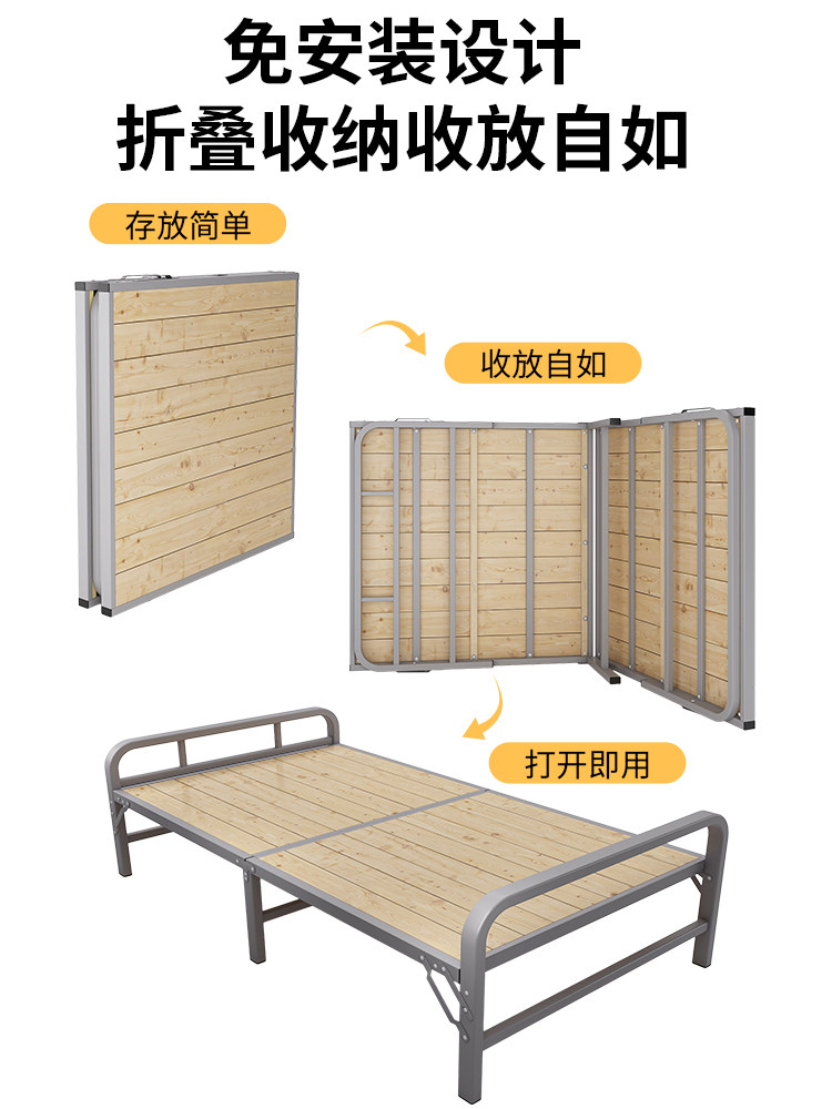Складная кровать сплошной деревянная доска дома для взрослых, простой двойной прокат кровати Дом железная рама 1 -метровая односпальная односпальная кровать