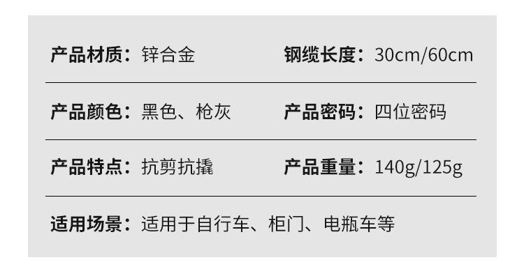 - 20 см [черное] блокировка пароля стального кабеля