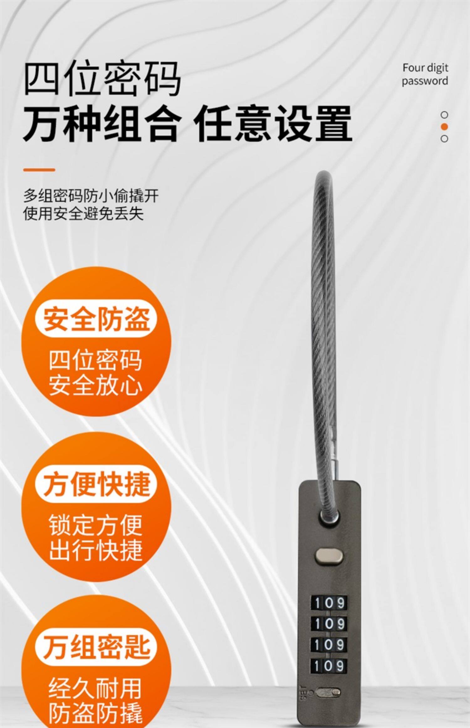 - 38 см [черный] блокировка пароля стального кабеля