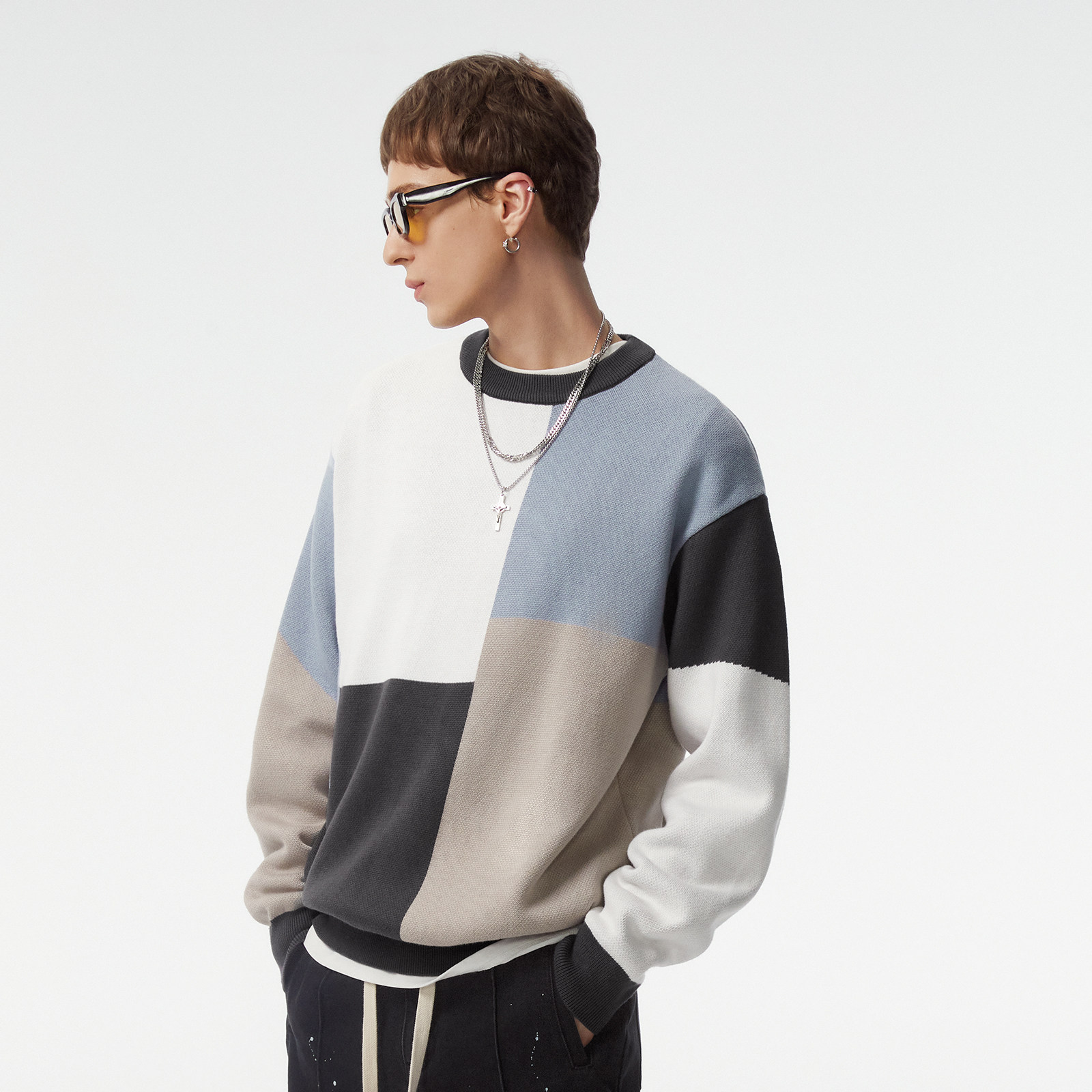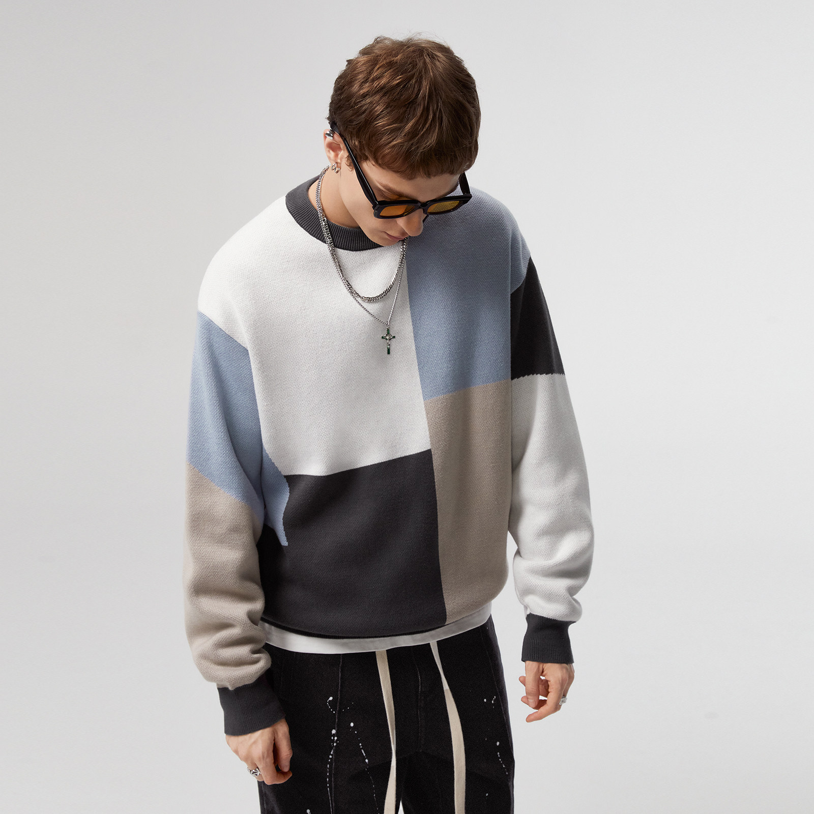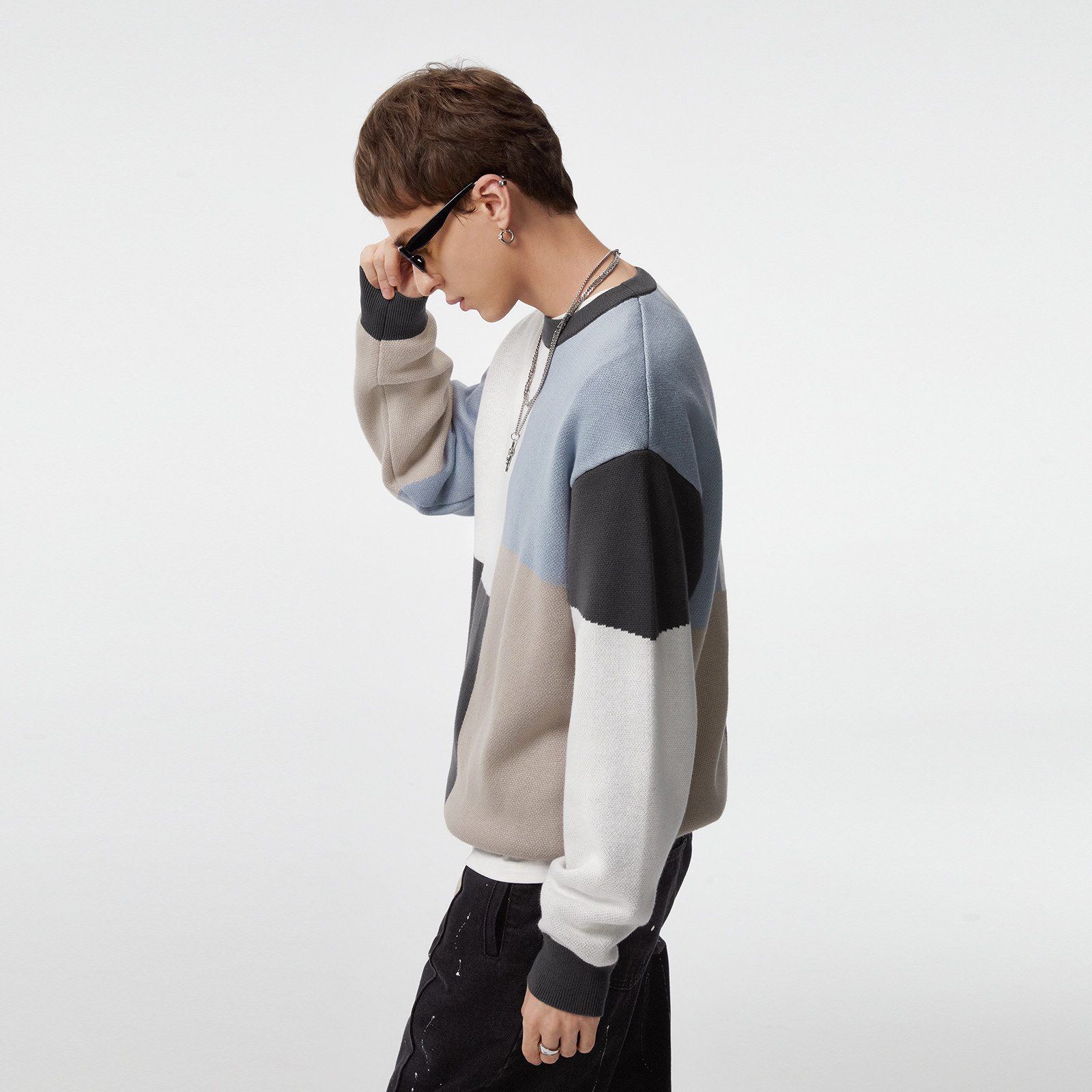 Демисезонный осенний трикотажный свитер с круглым воротником