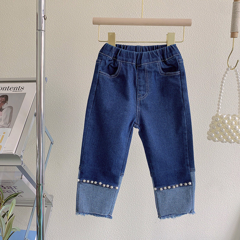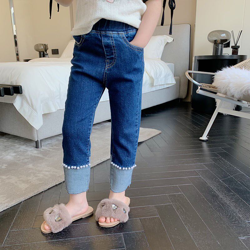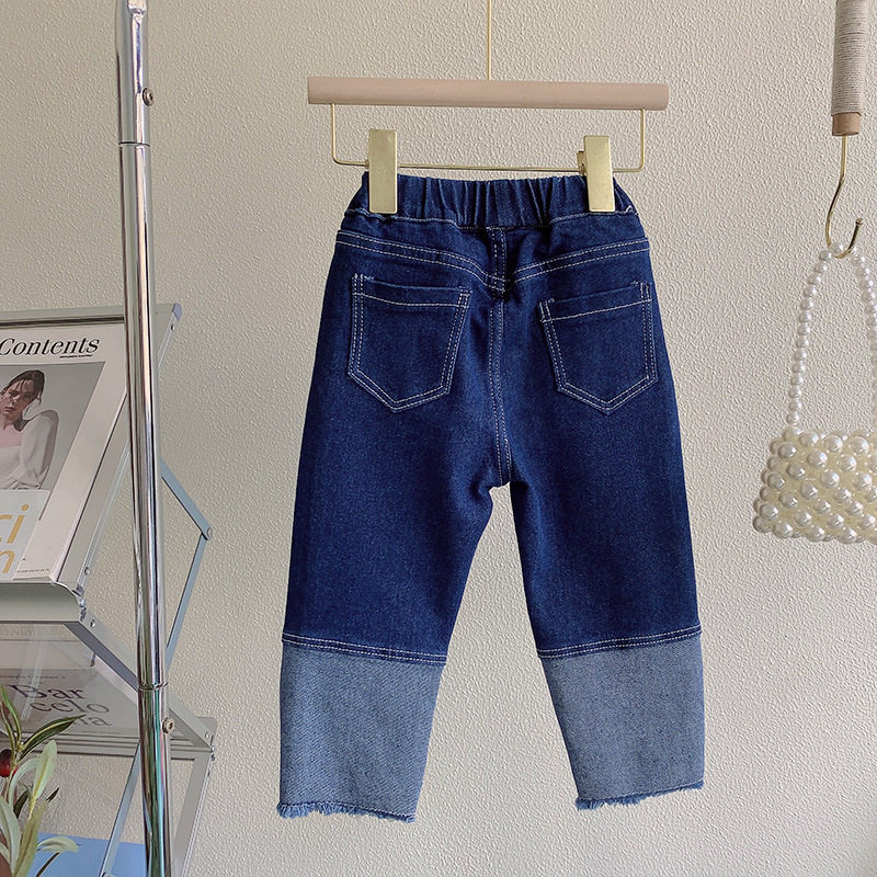 Осенние хлопковые прямые свободные джинсы, штаны для девочек, в корейском стиле