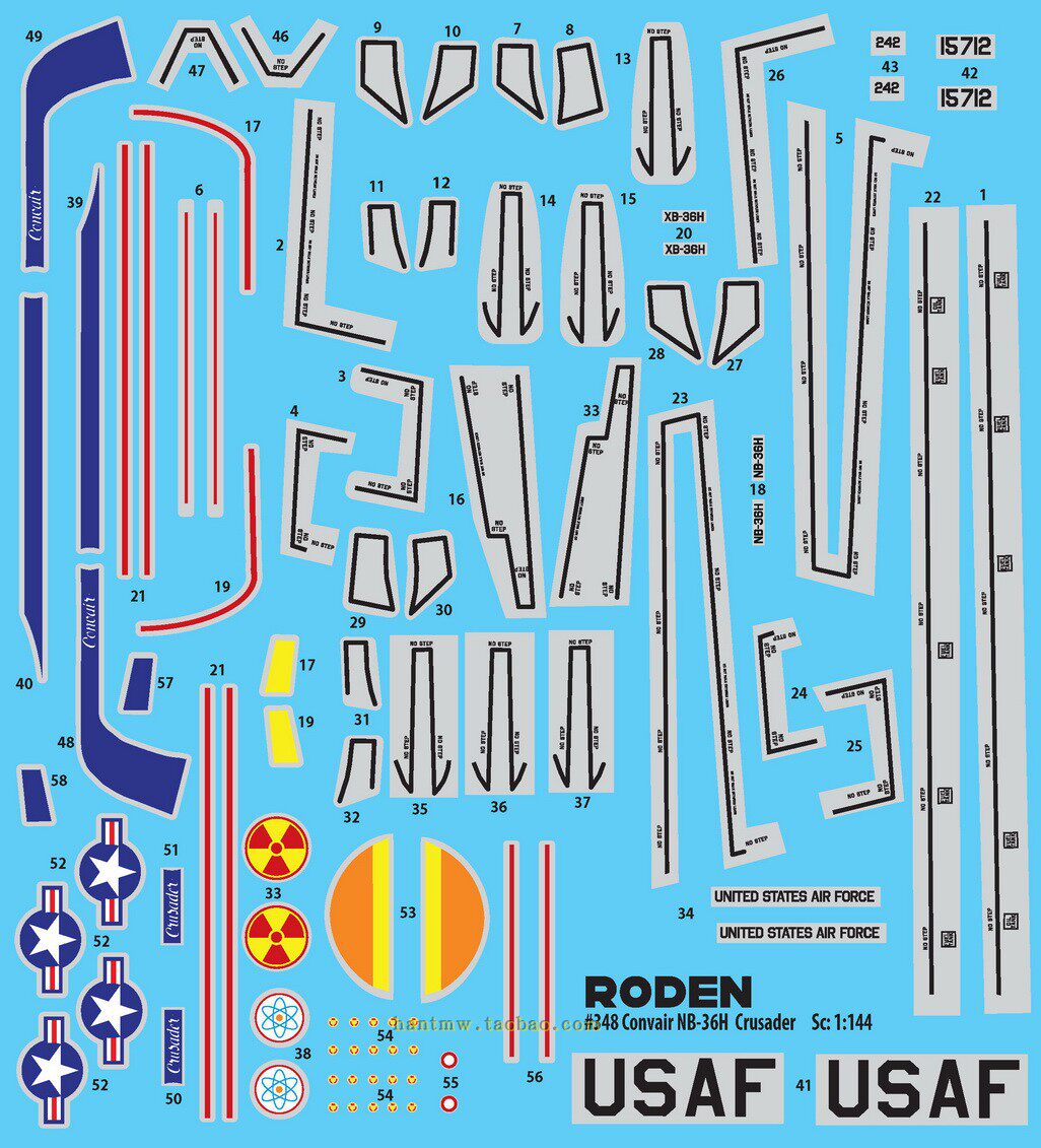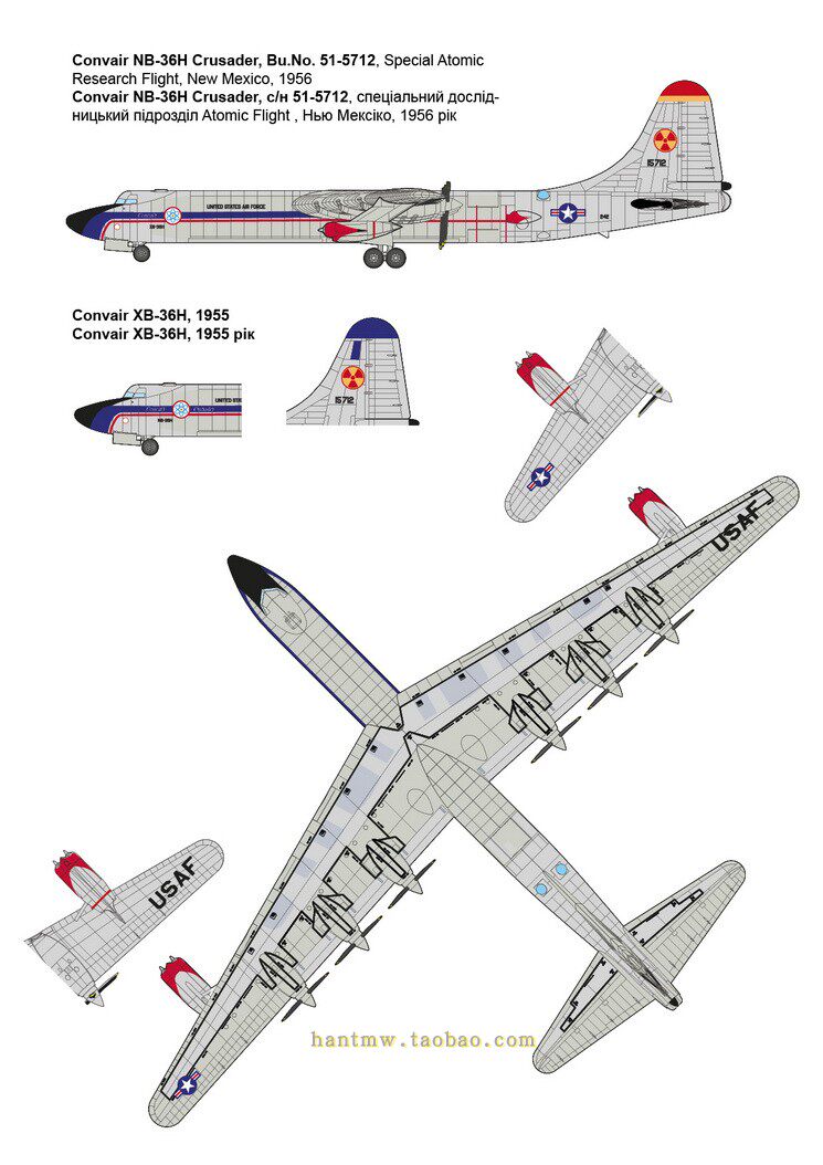 RN348 Convair NB/XB-36H Crusader атомный бомбардировщик 1/144 пластиковая собранная модель самолета