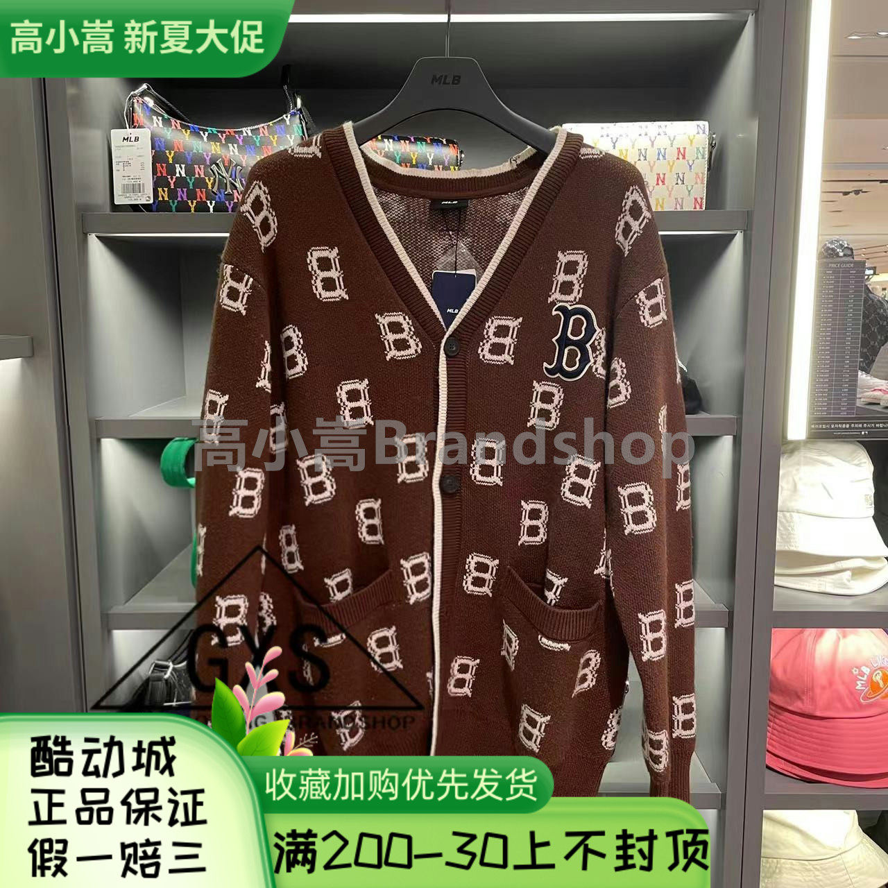MLB, демисезонный классический трикотажный брендовый кардиган, свитер, куртка подходит для мужчин и женщин для отдыха