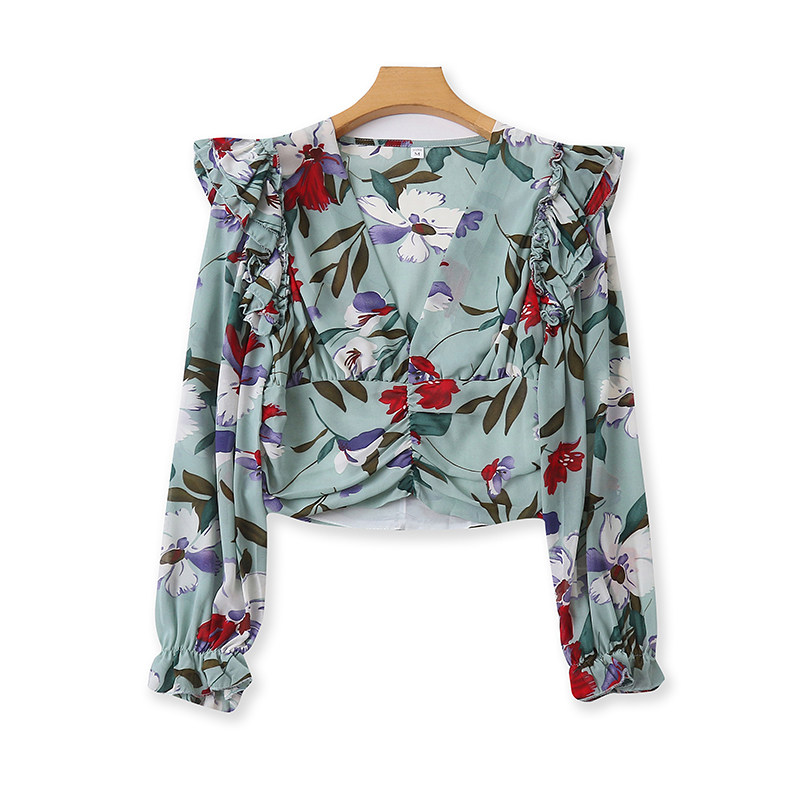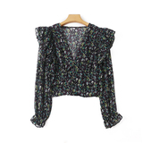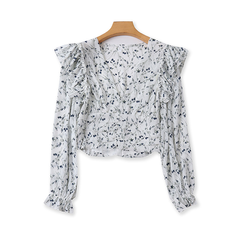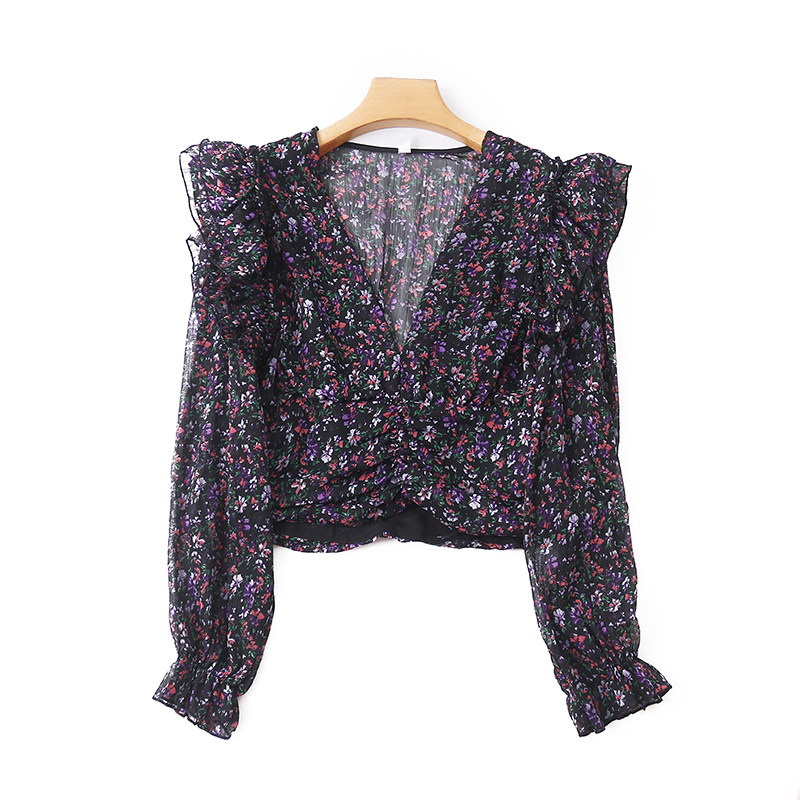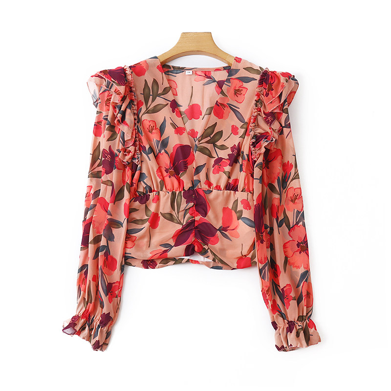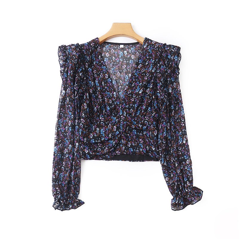V -neck шифоновая рубашка цветочный дизайн