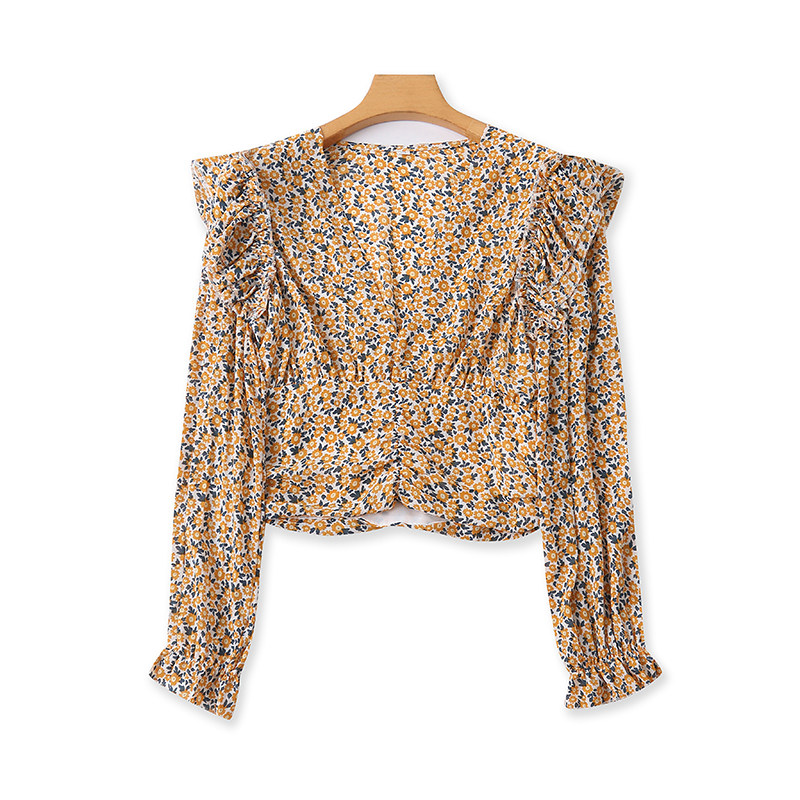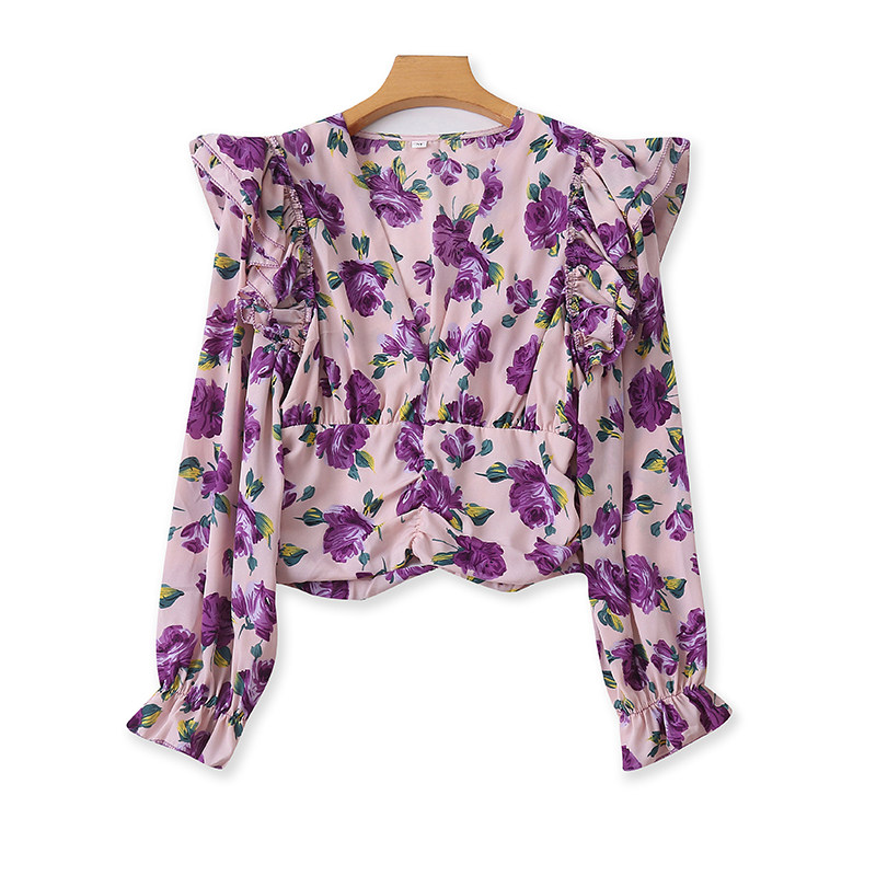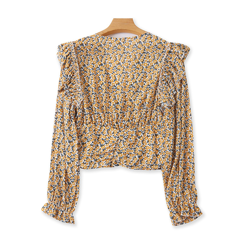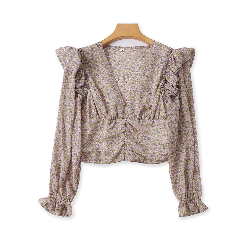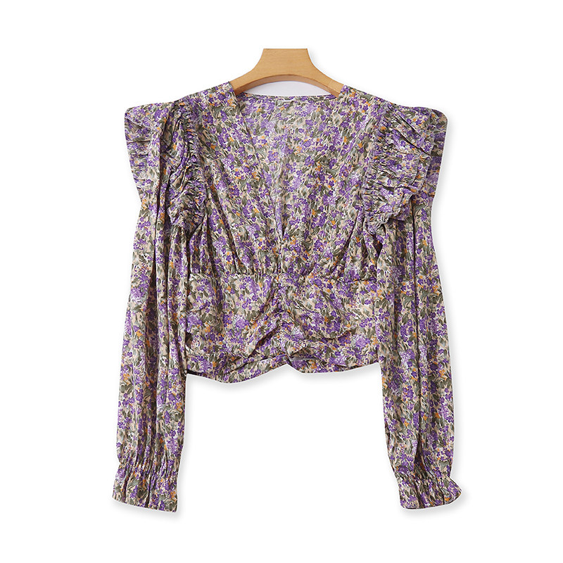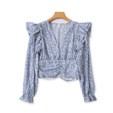 V -neck шифоновая рубашка цветочный дизайн