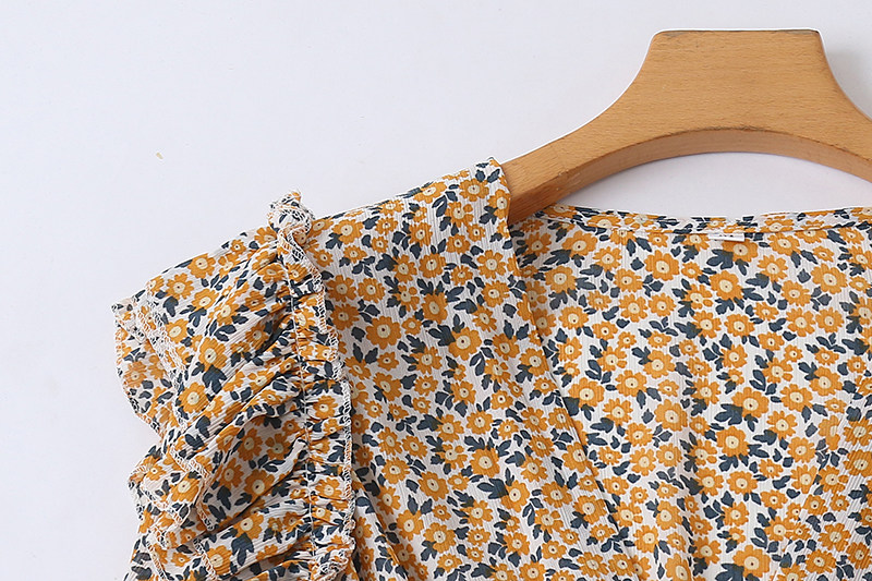 Шифоновый летний мегафон, нарукавники, V-образный вырез, цветочный принт