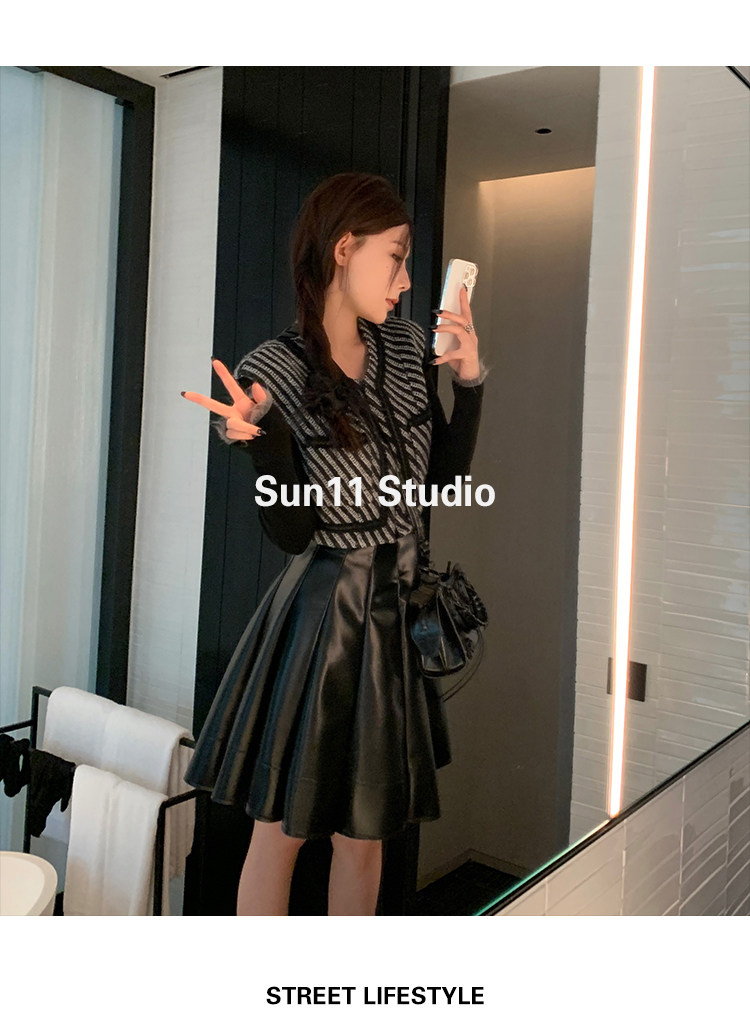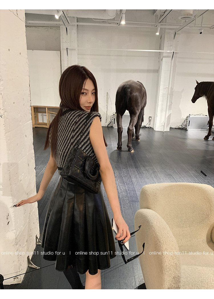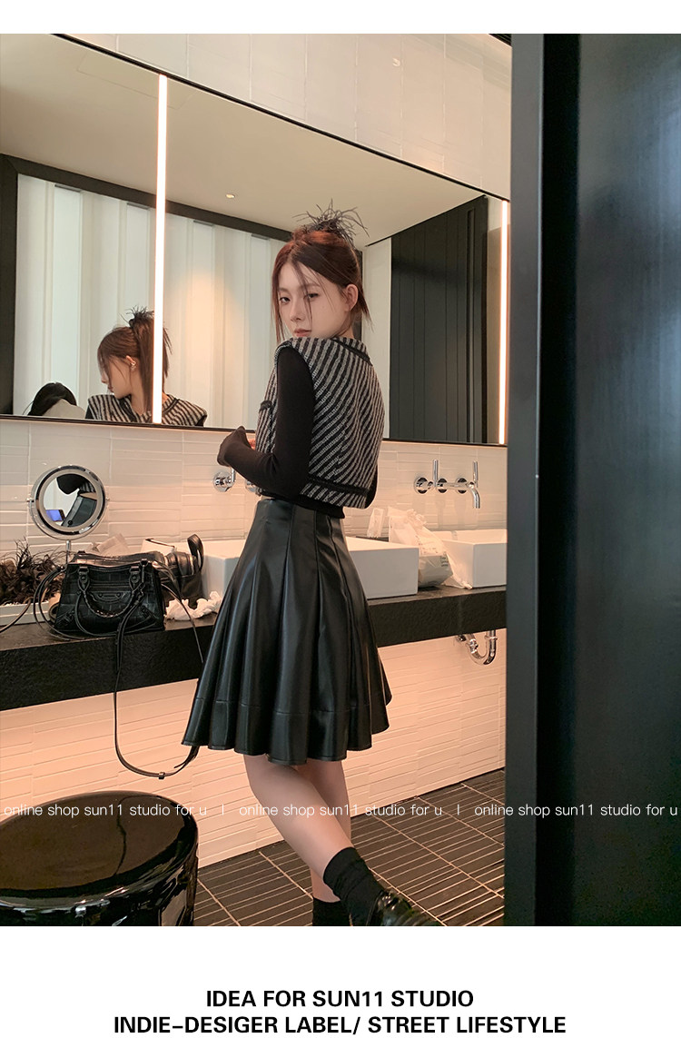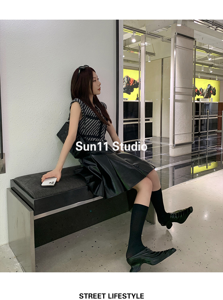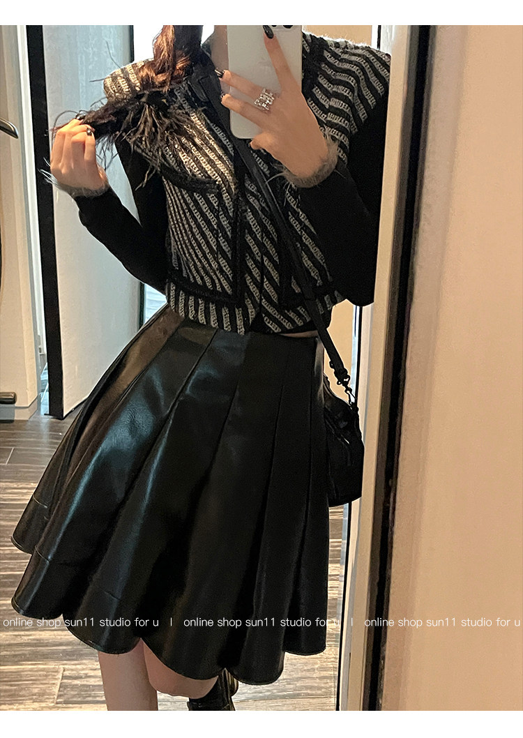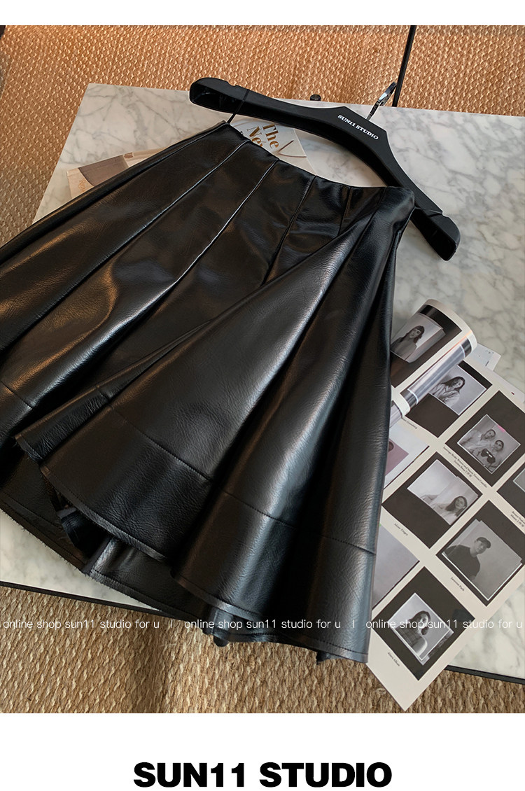 Полиуретановая черная осенняя мини-юбка, юбка в складку, высокая талия, А-силуэт, плиссированная юбка