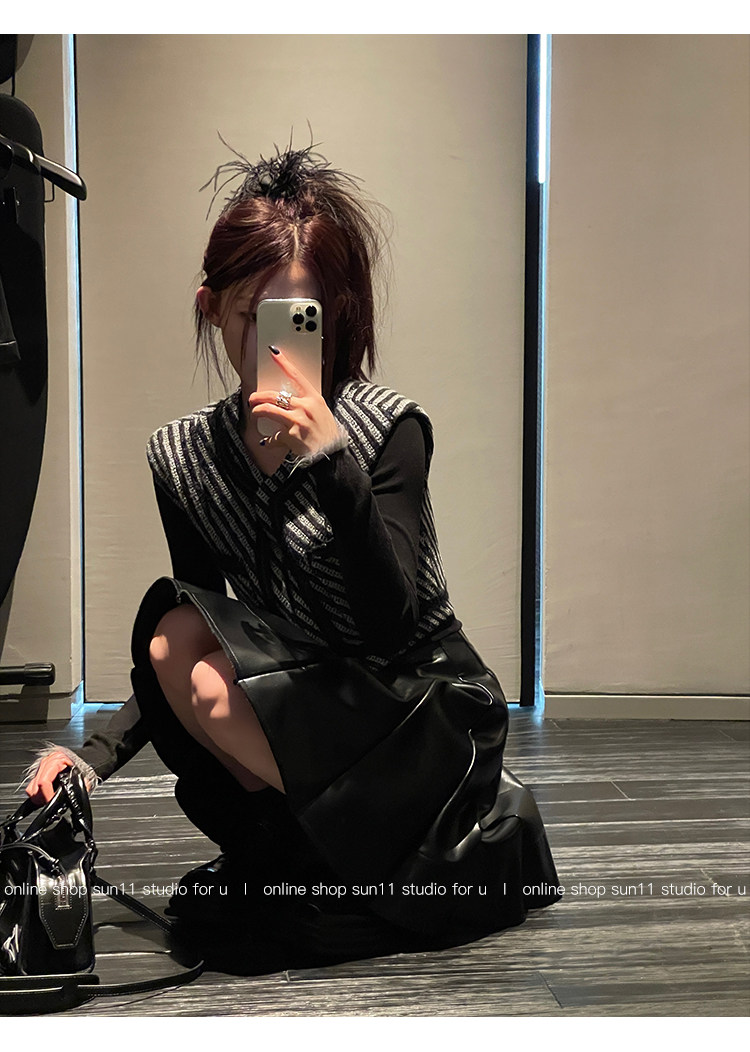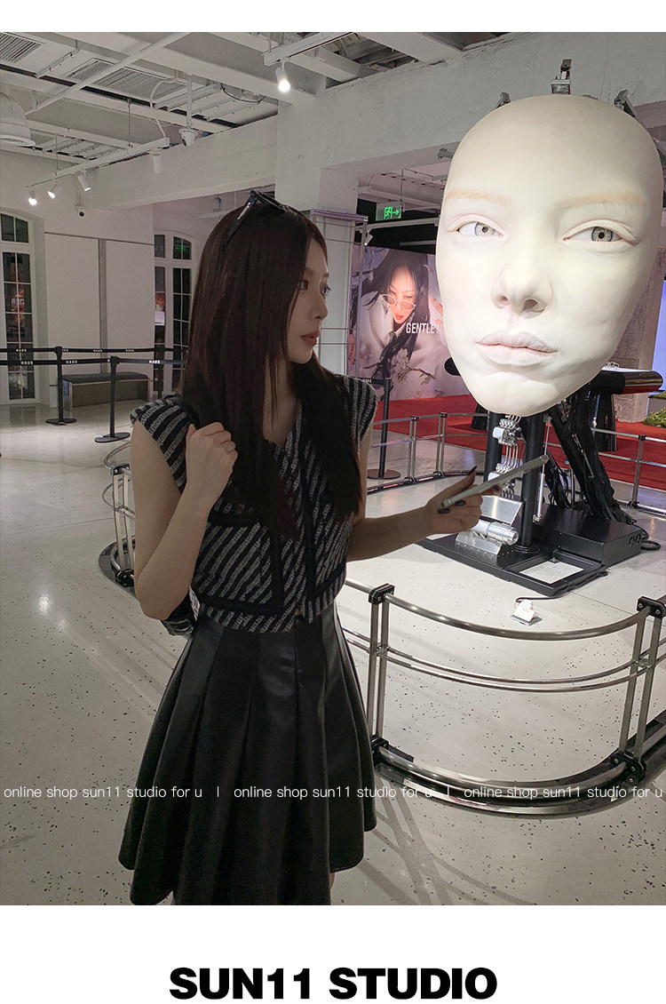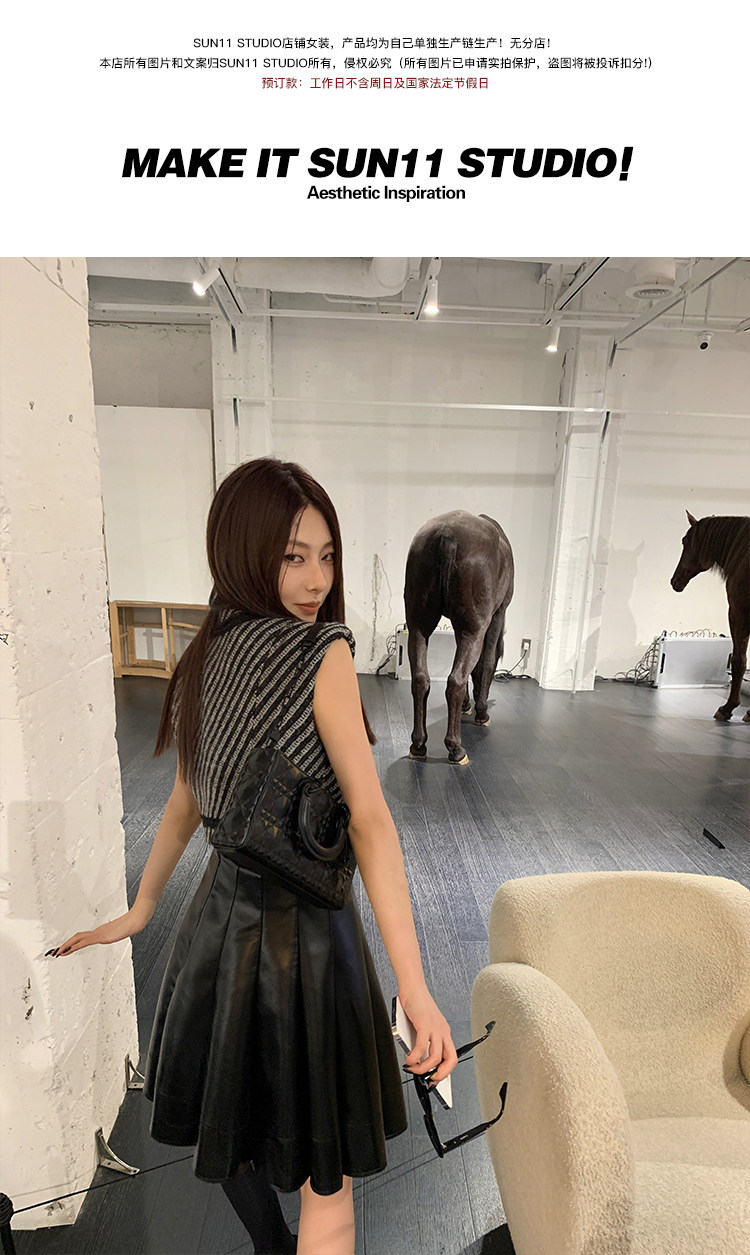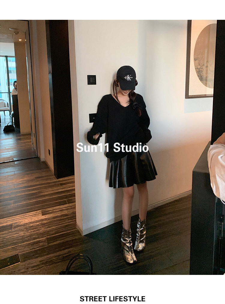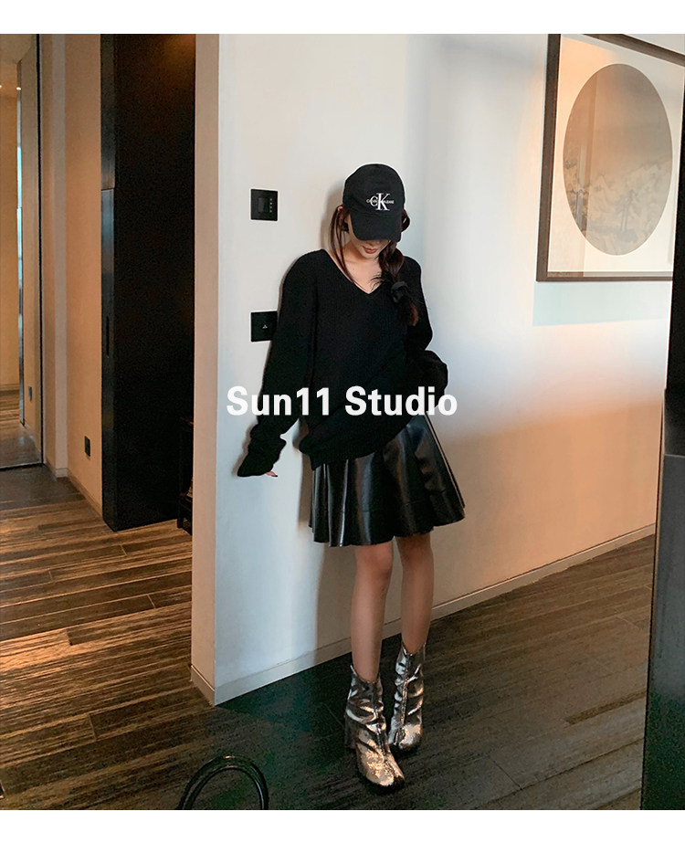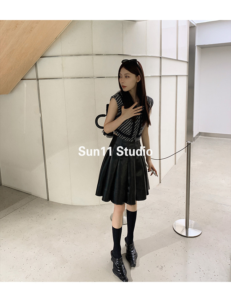 Полиуретановая черная осенняя мини-юбка, юбка в складку, высокая талия, А-силуэт, плиссированная юбка