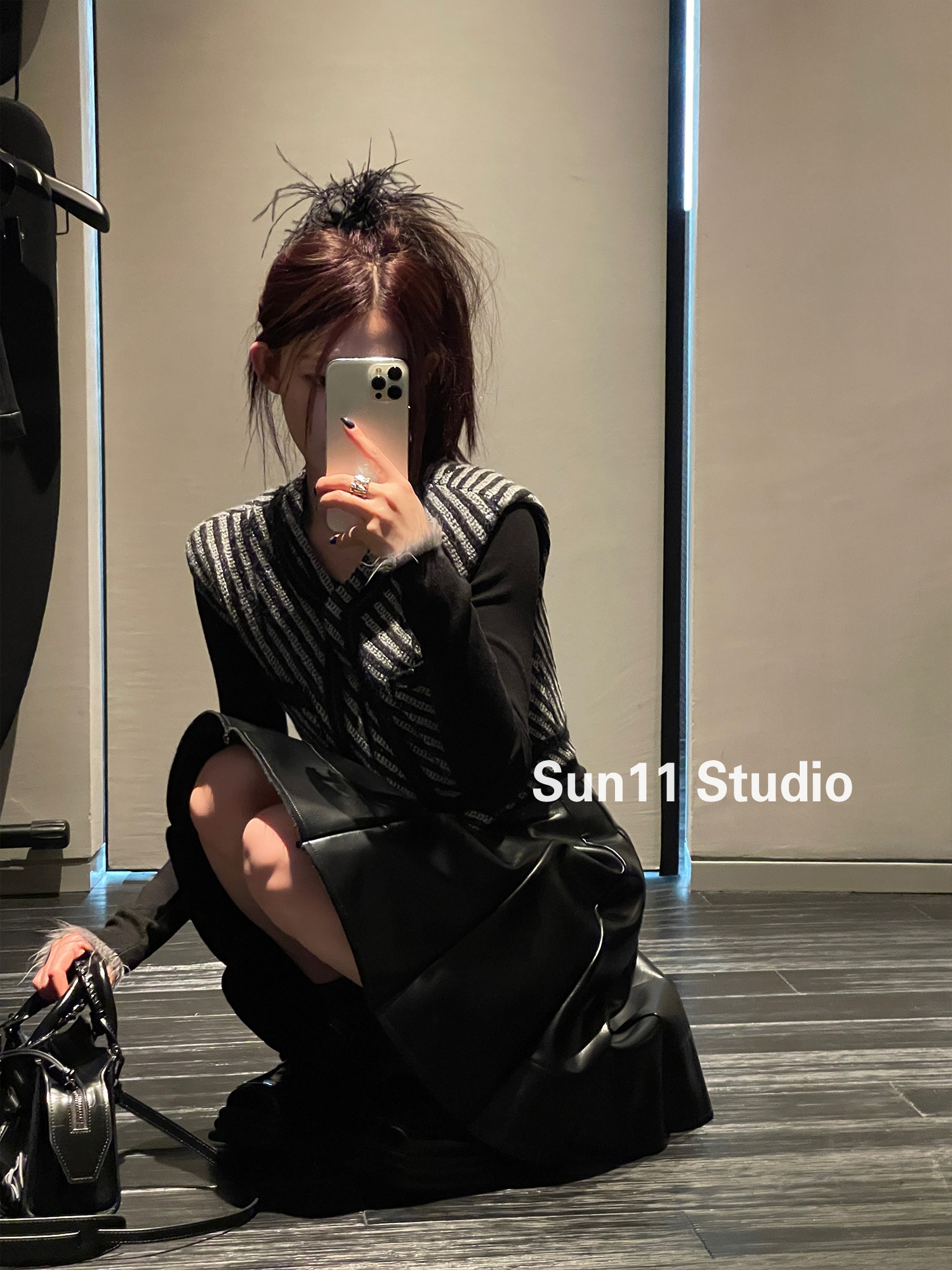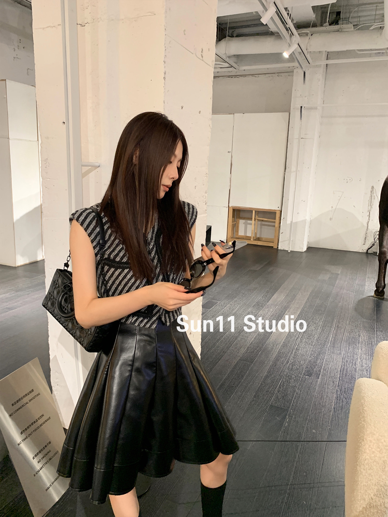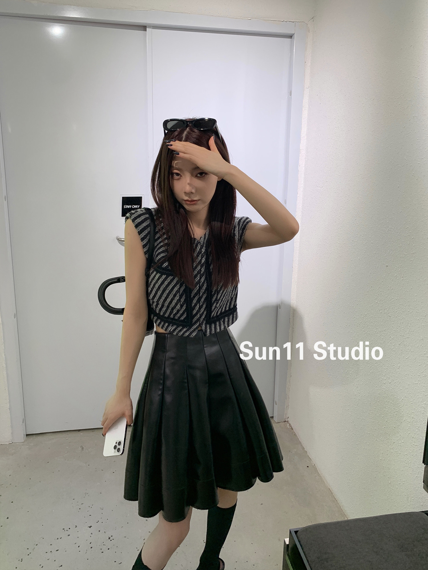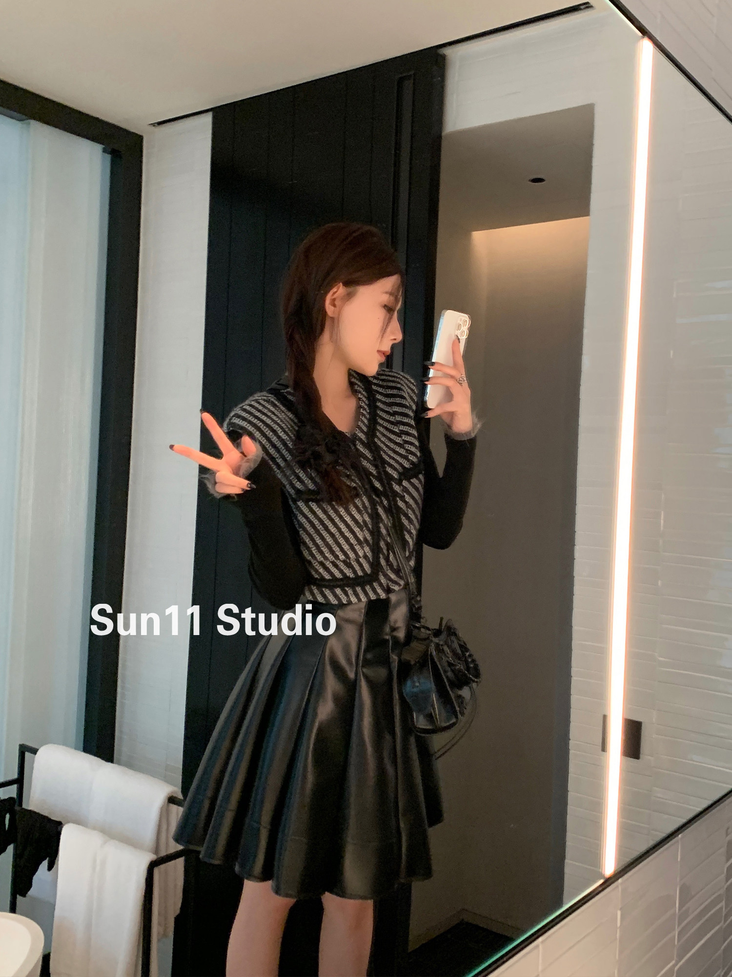 Полиуретановая черная осенняя мини-юбка, юбка в складку, высокая талия, А-силуэт, плиссированная юбка