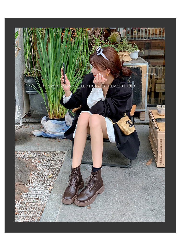 Martens, высокие летние тонкие весенние коричневые короткие сапоги в английском стиле, подходит для подростков, модель весна/осень 2023 года, в британском стиле