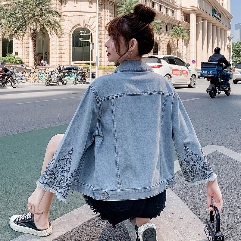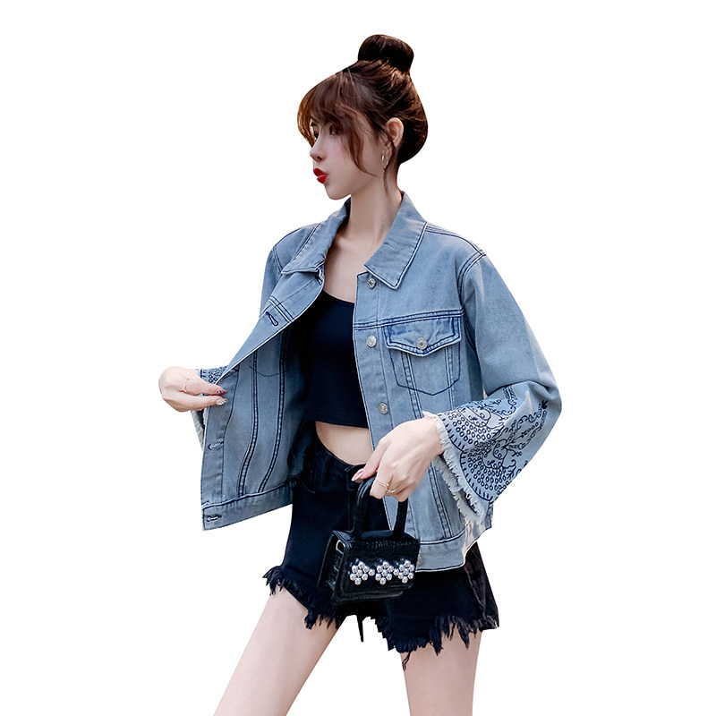 Осенняя дизайнерская джинсовая куртка, мегафон, в корейском стиле, большой размер, с вышивкой, тренд сезона, свободный крой
