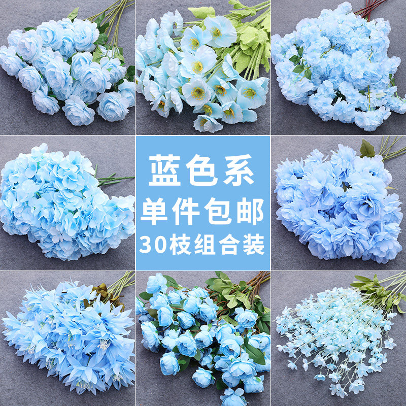 Новый свадебный синий мультиразветвенный моделируемый цветы свадебный зал Потолочный сцен