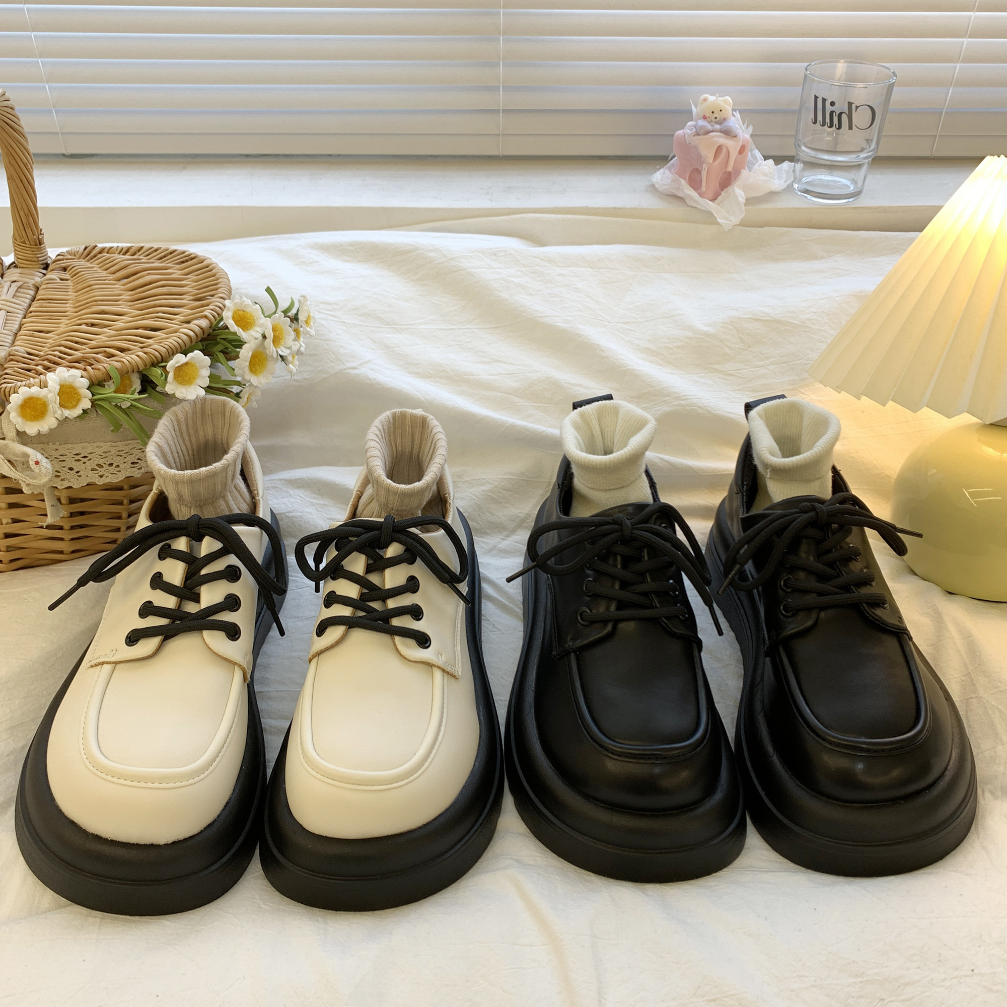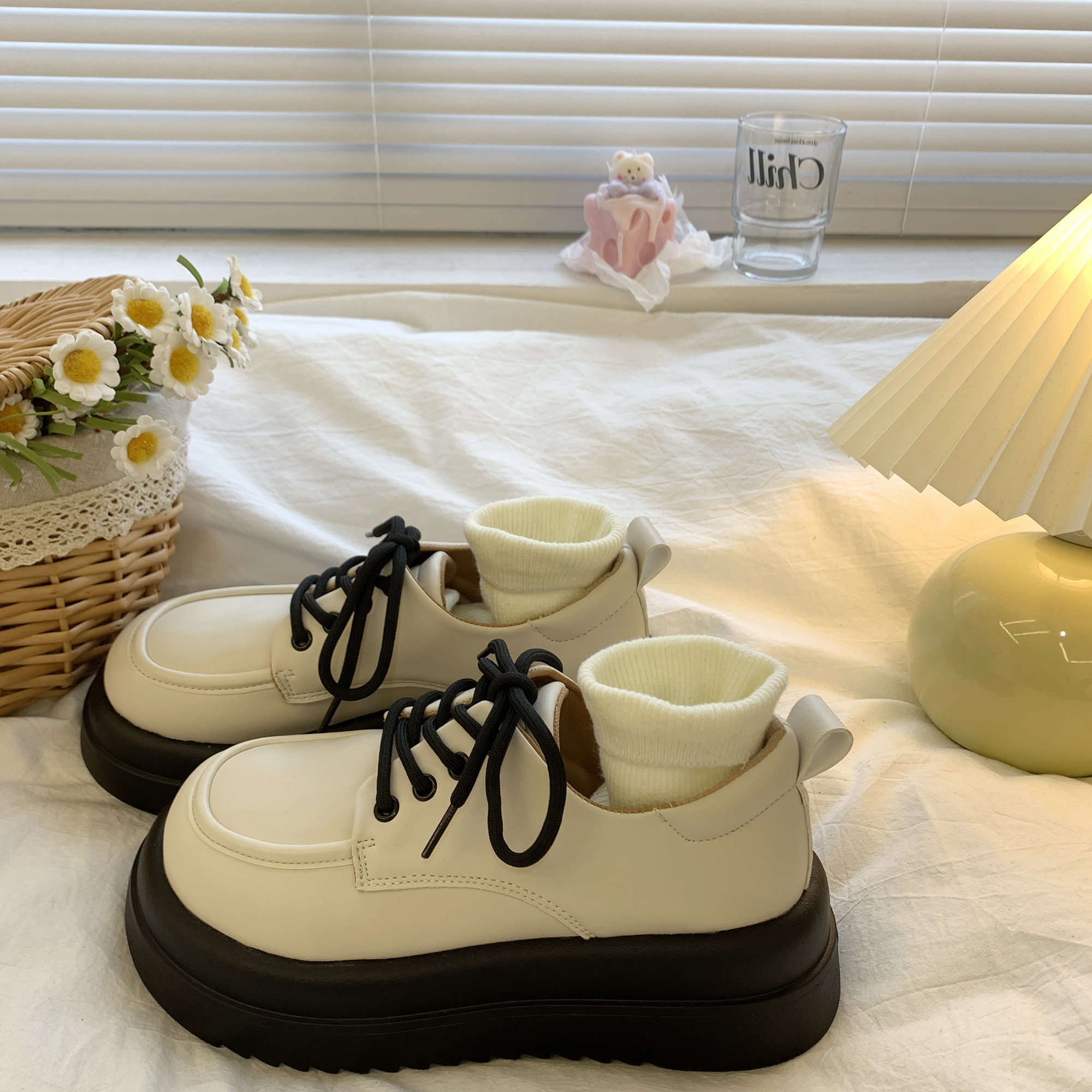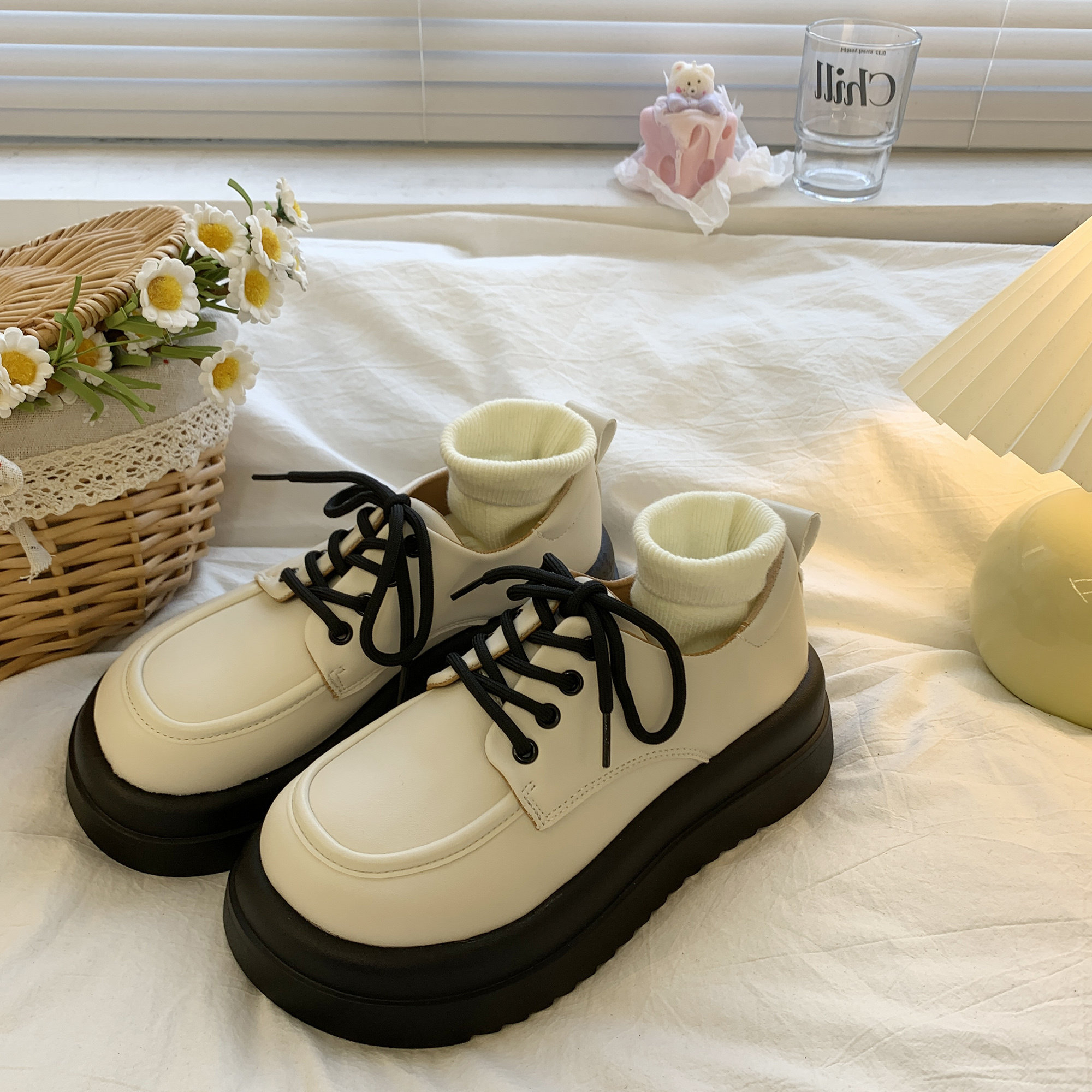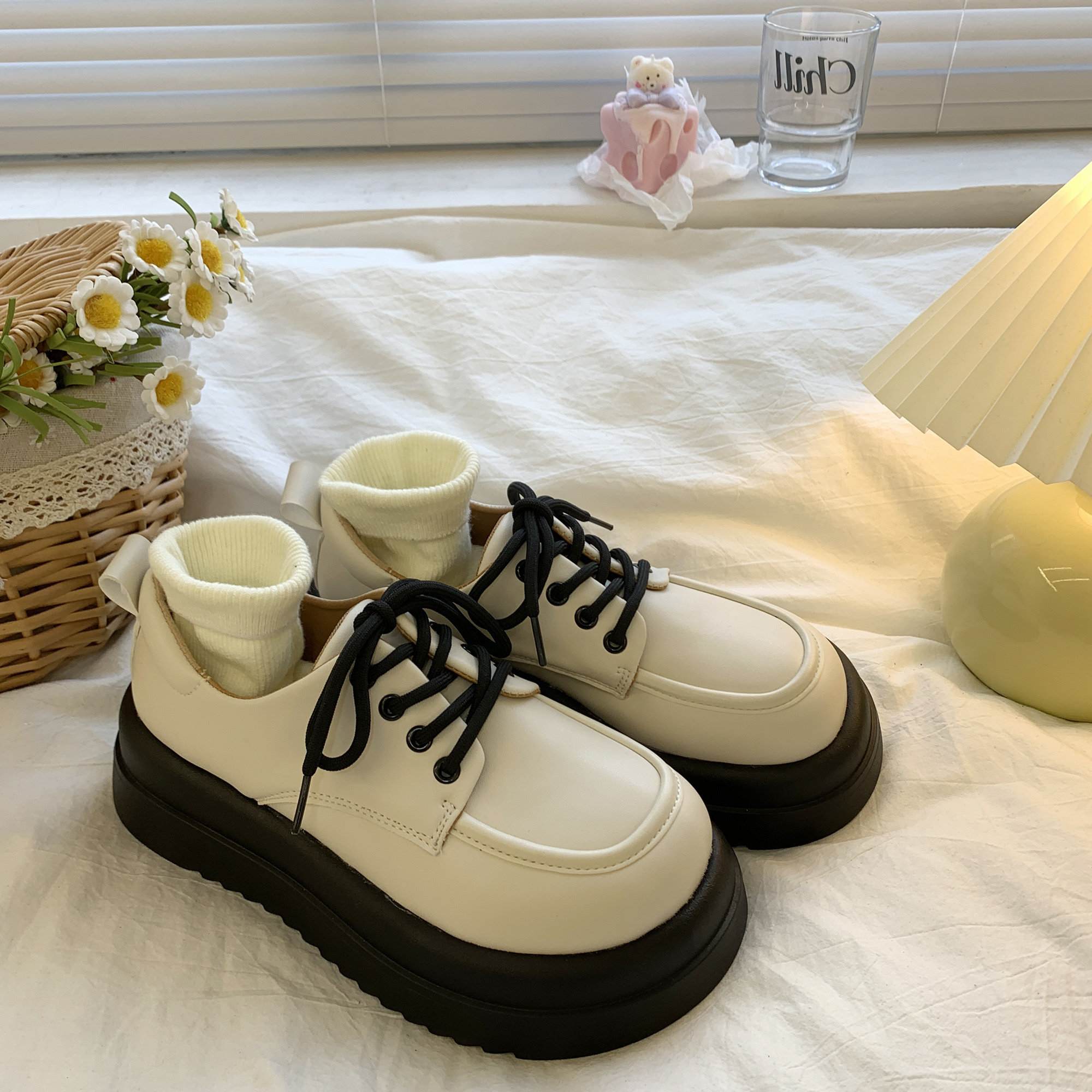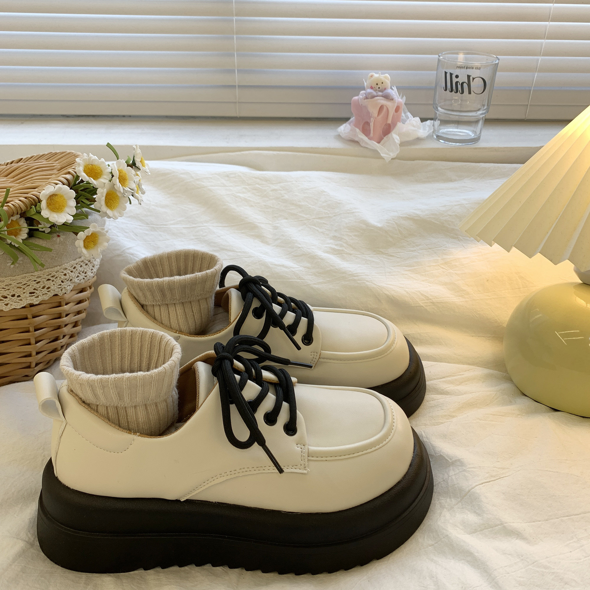 Демисезонная белая универсальная японская обувь на платформе для кожаной обуви в английском стиле, тренд сезона, в британском стиле