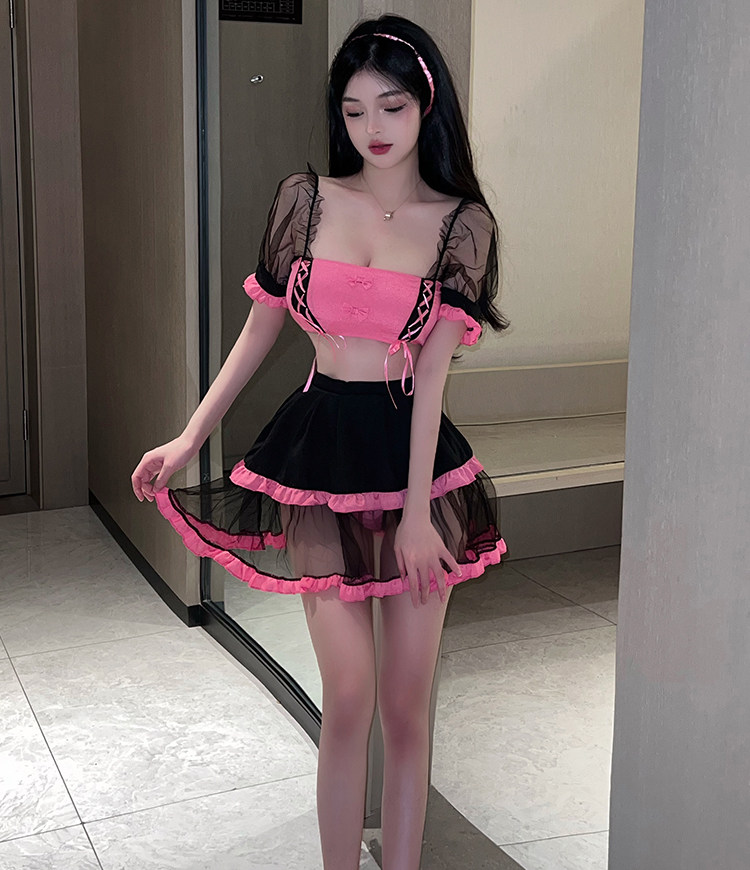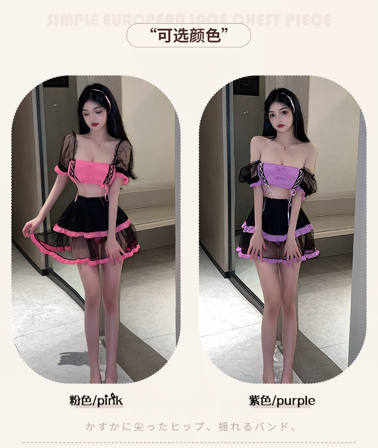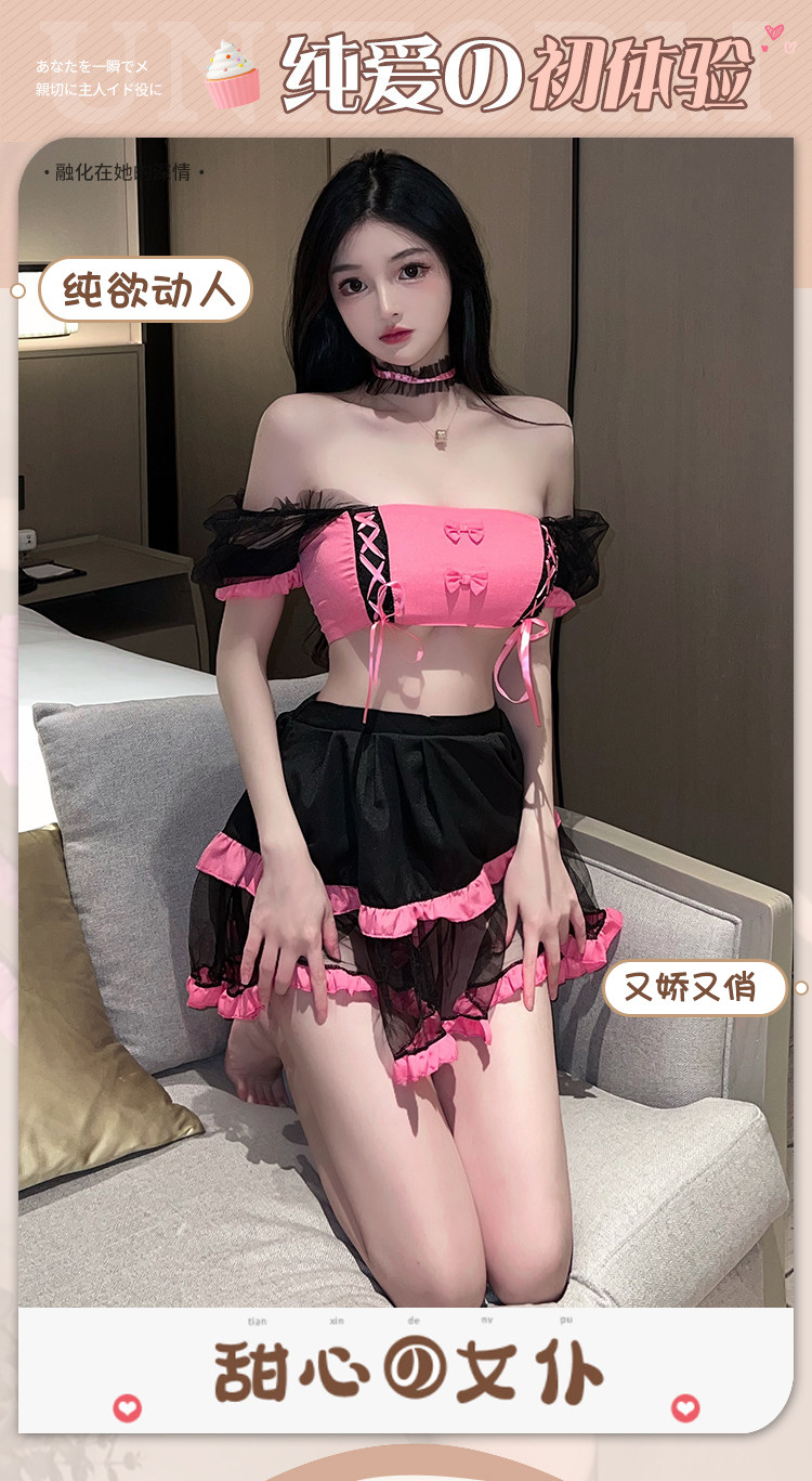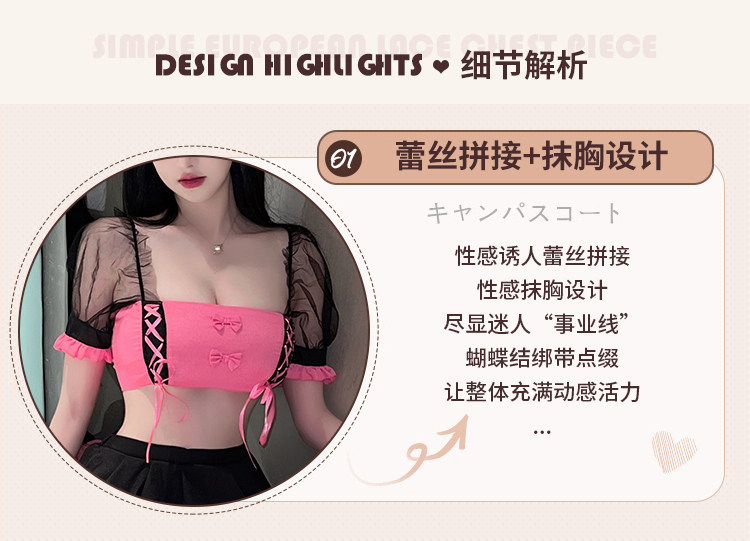 Сексуальное нижнее белье, милый кружевной топ без лямок, мини-юбка, комплект, квадратный вырез