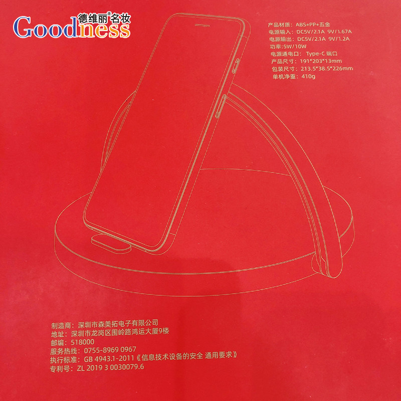 Внутренняя счетчик Clarins Беспроводная зарядка диска зарядка USB -кабель данных, соответствующий моделям мобильных телефонов, может быть заряжен