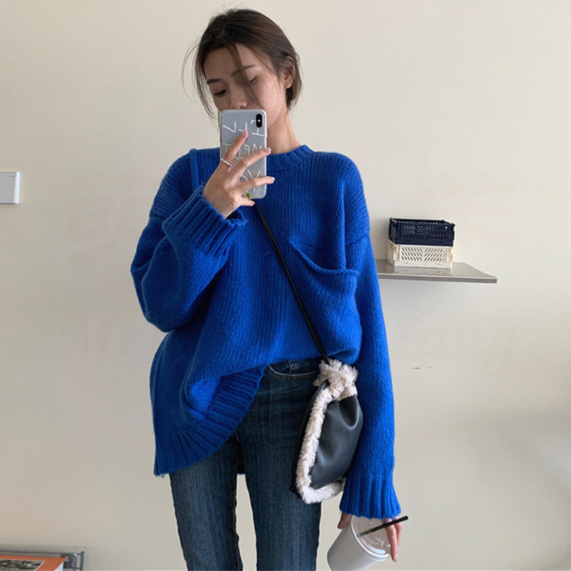 Трикотажный свитер, демисезонное синее термобелье, французский стиль