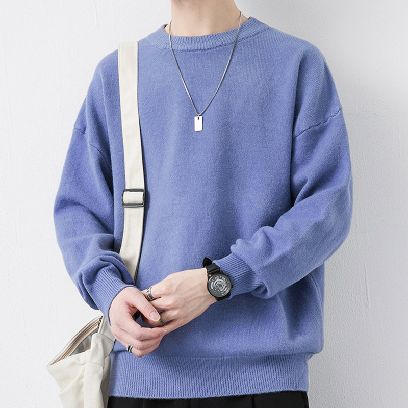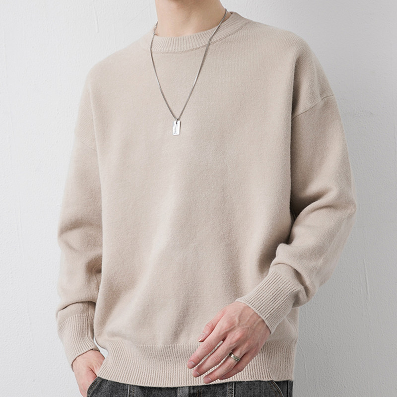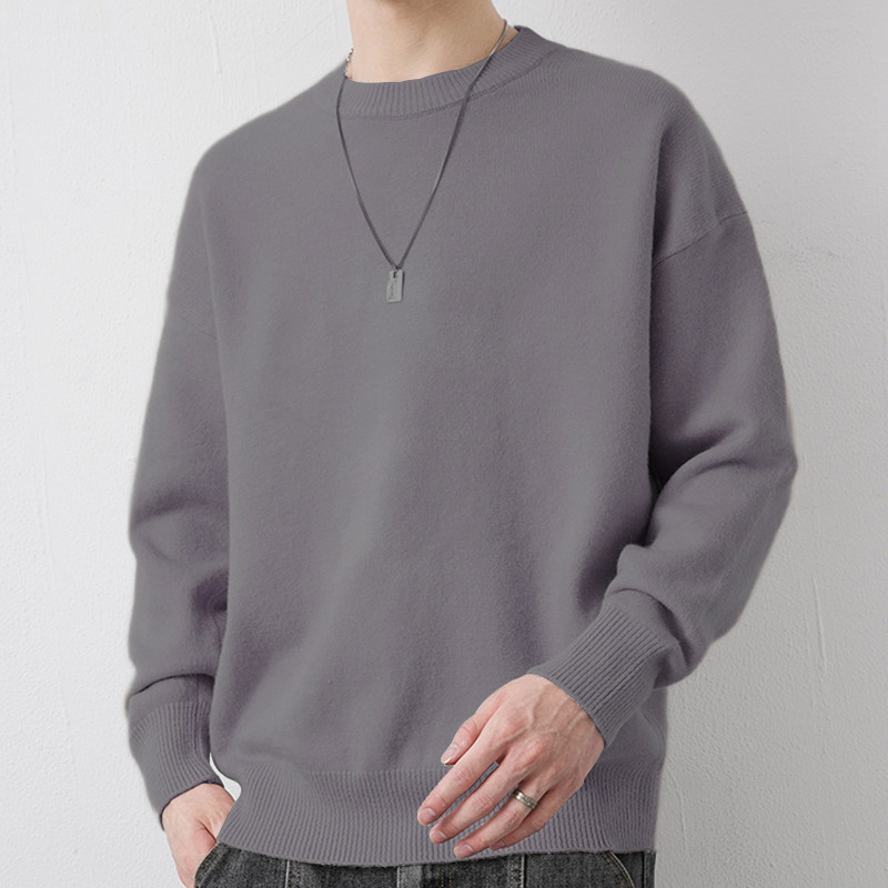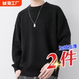 Мужской утепленный демисезонный цветной трикотажный шерстяной свитер с круглым воротником, увеличенная толщина