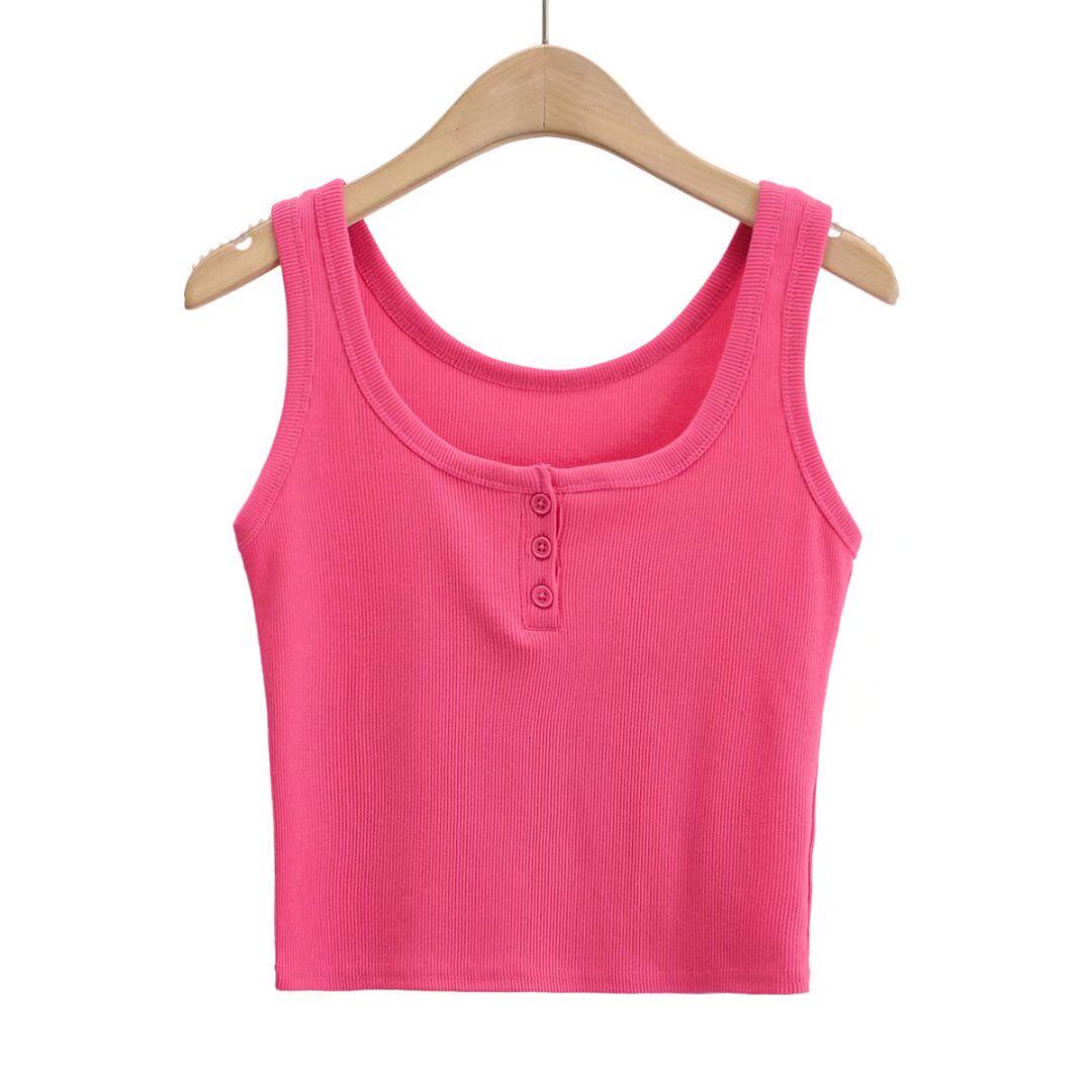 Летняя приталенная короткая базовая майка топ без рукавов, европейский стиль