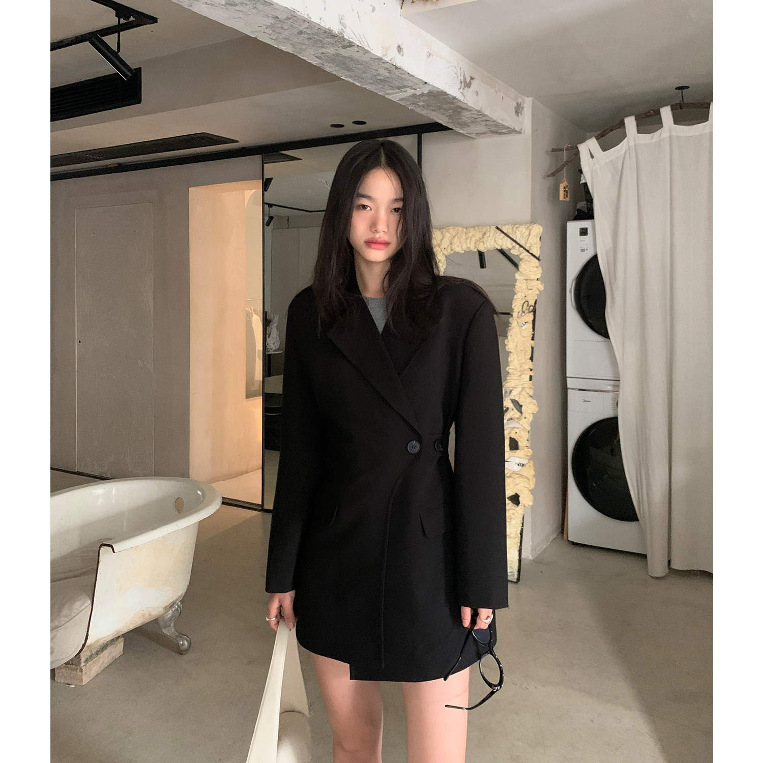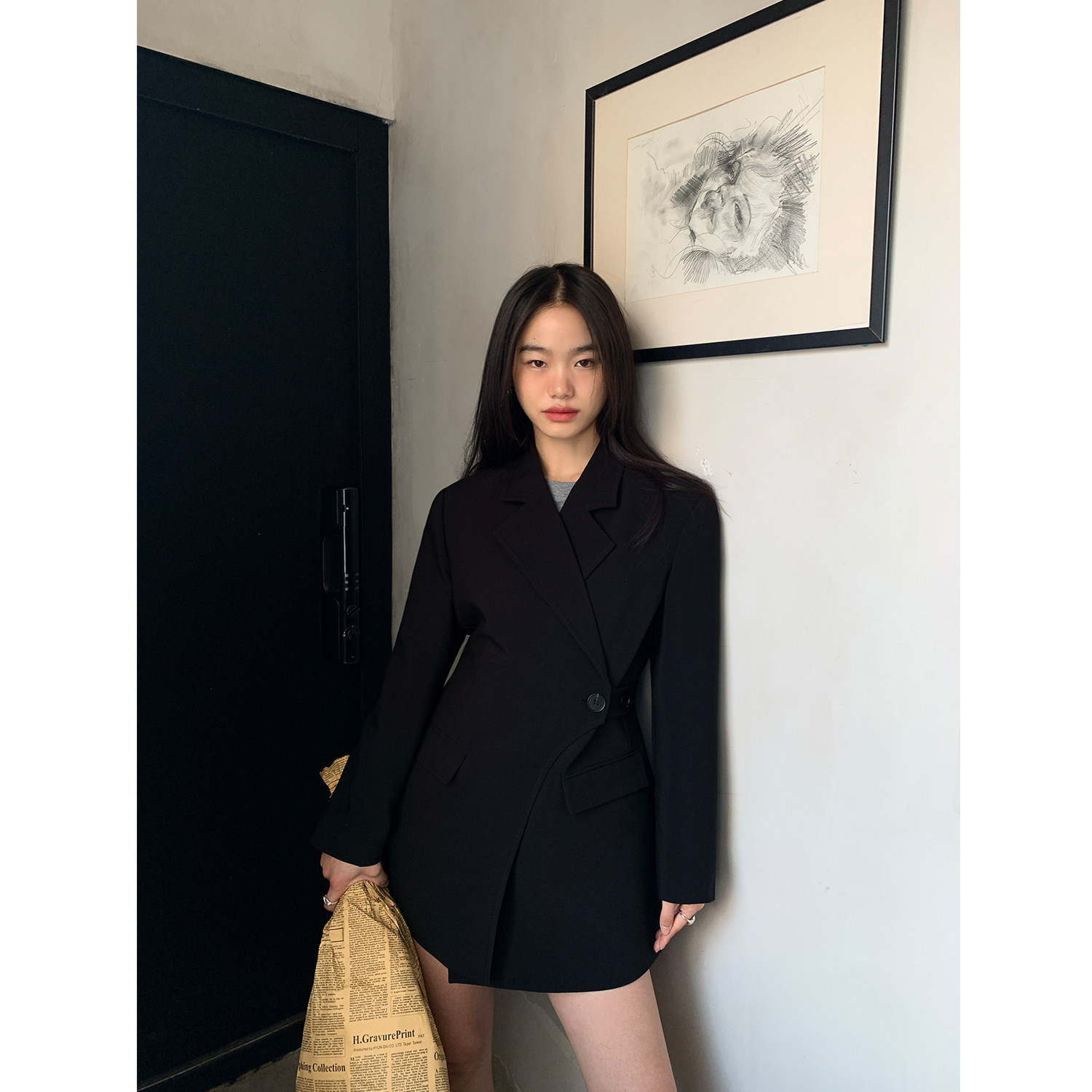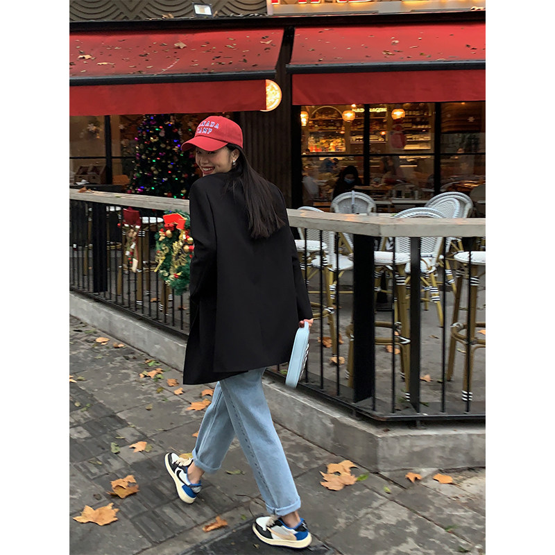 Черный корсет, весенний осенний костюм, небольшая куртка