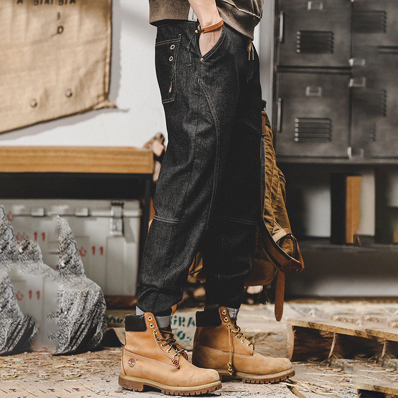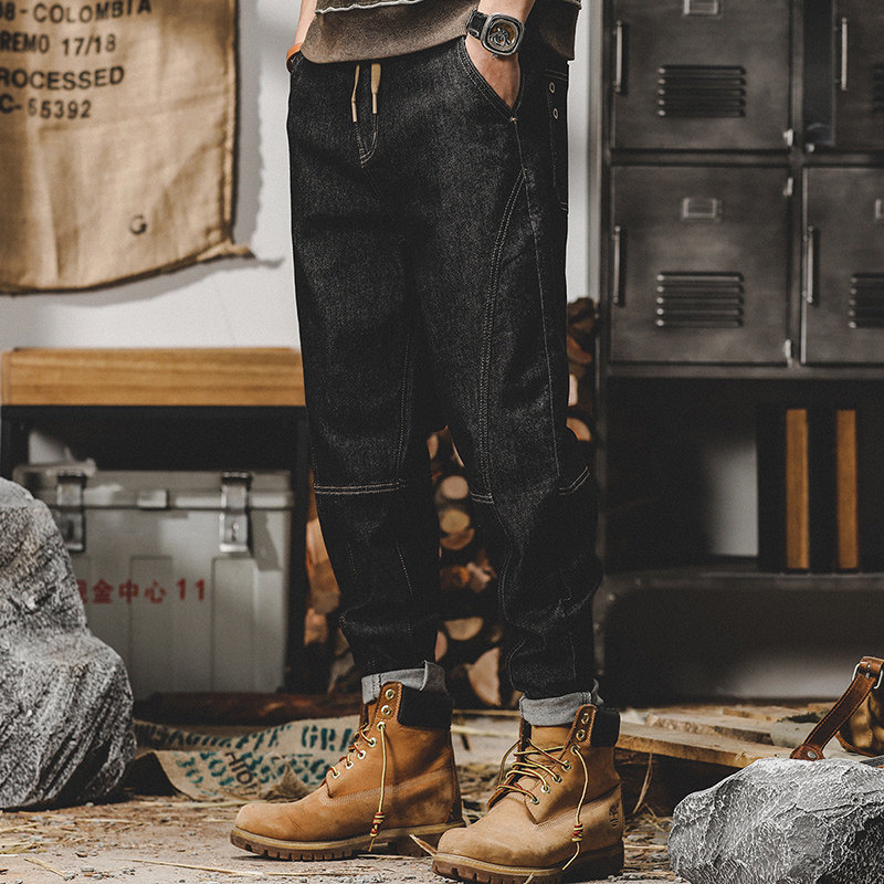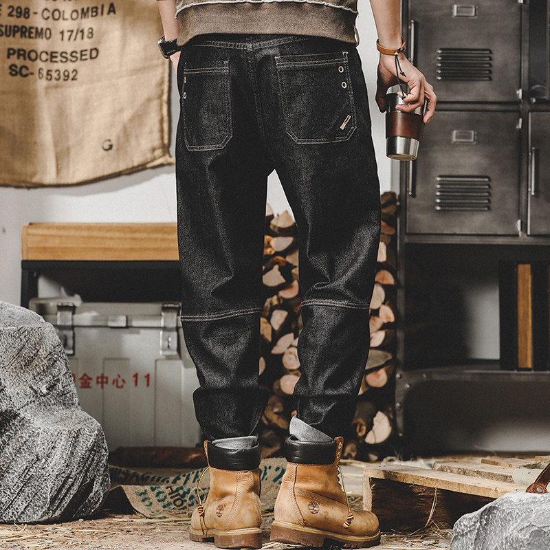 Ретро штаны, мужские джинсы, в американском стиле, осенние, свободный прямой крой