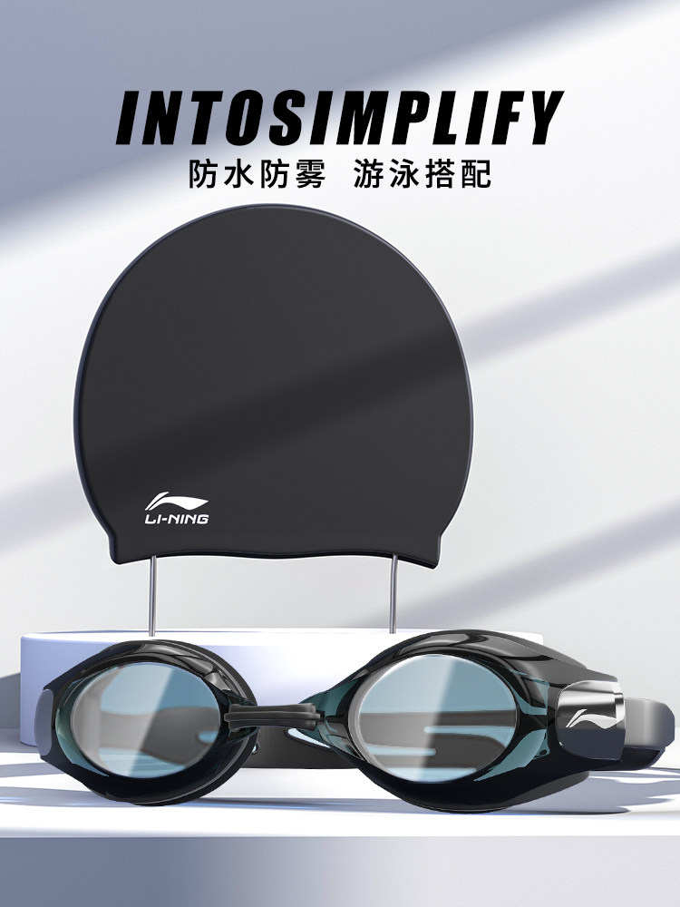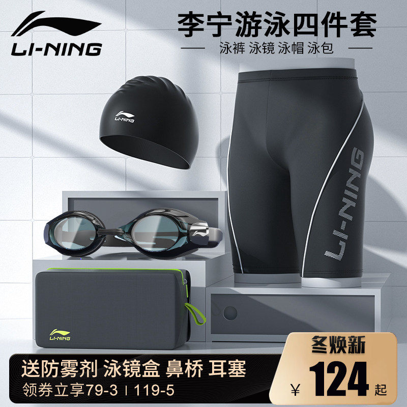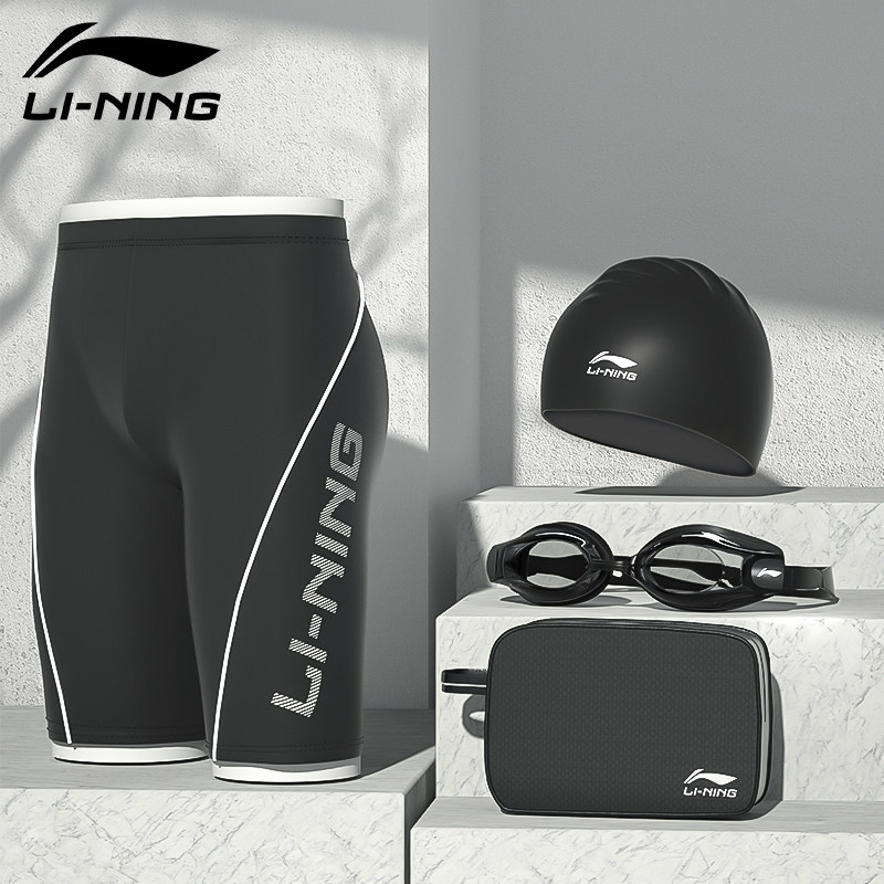 Li Ning, мужские штаны для плавания, купальник, комплект, летняя водонепроницаемая плавательная шапочка, плавательный аксессуар