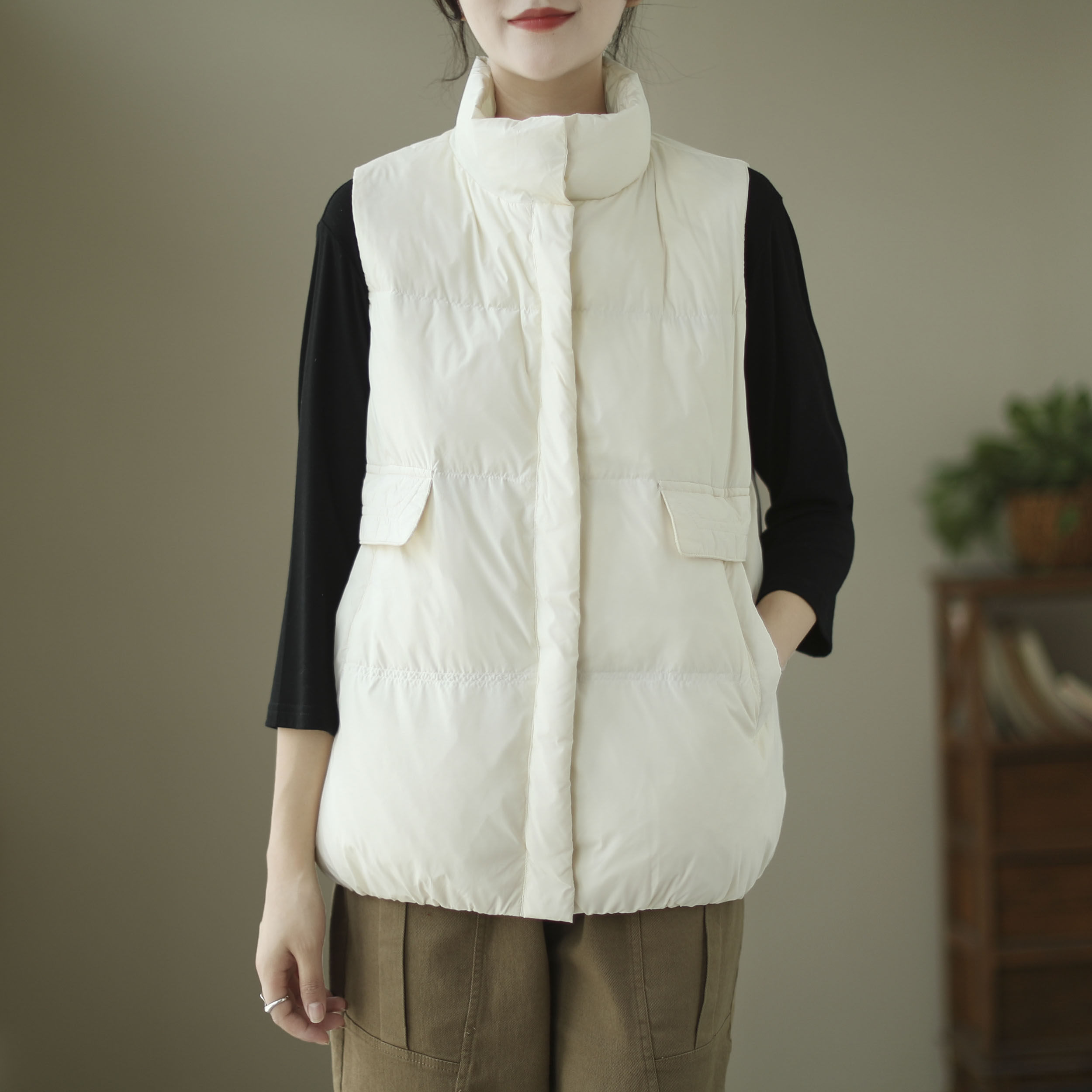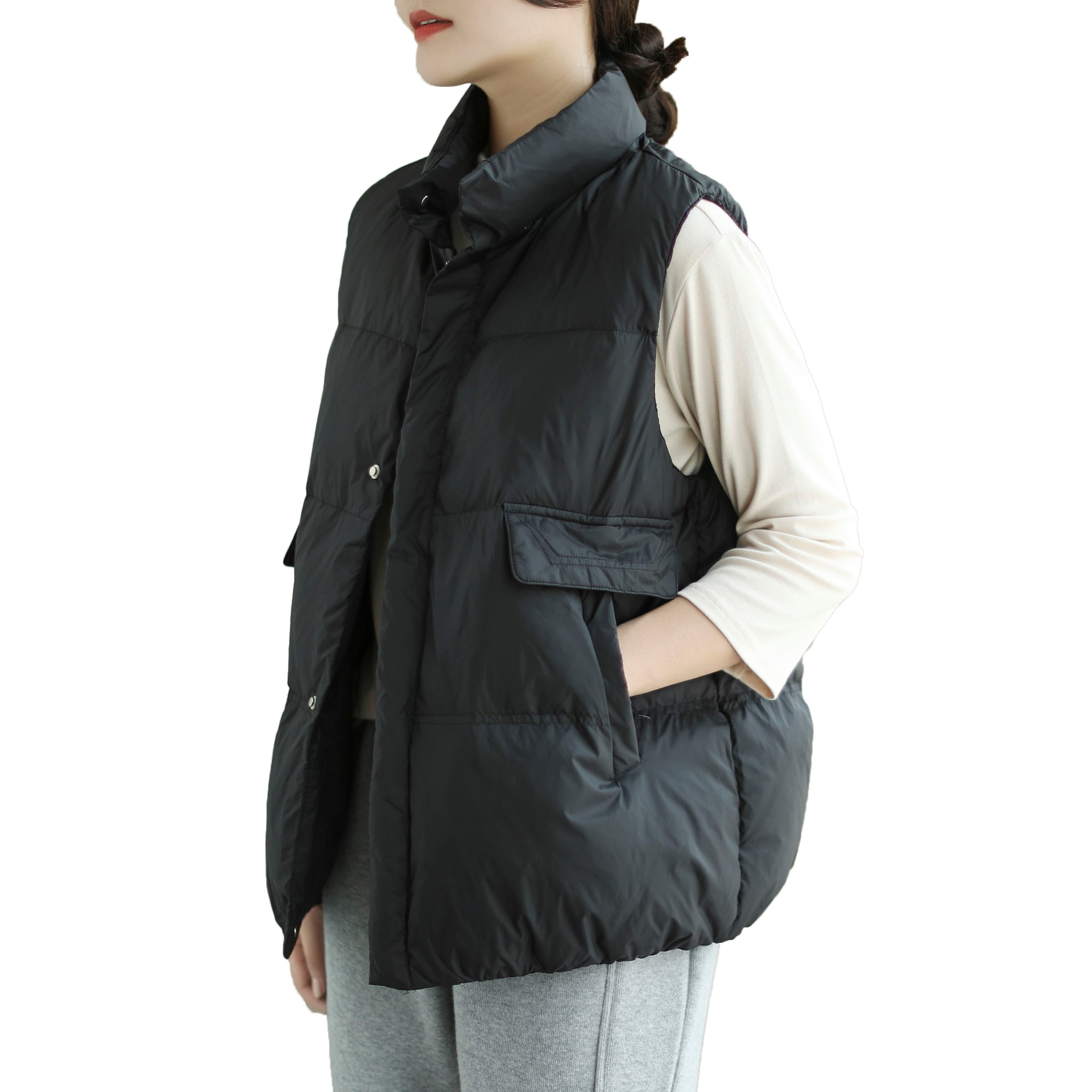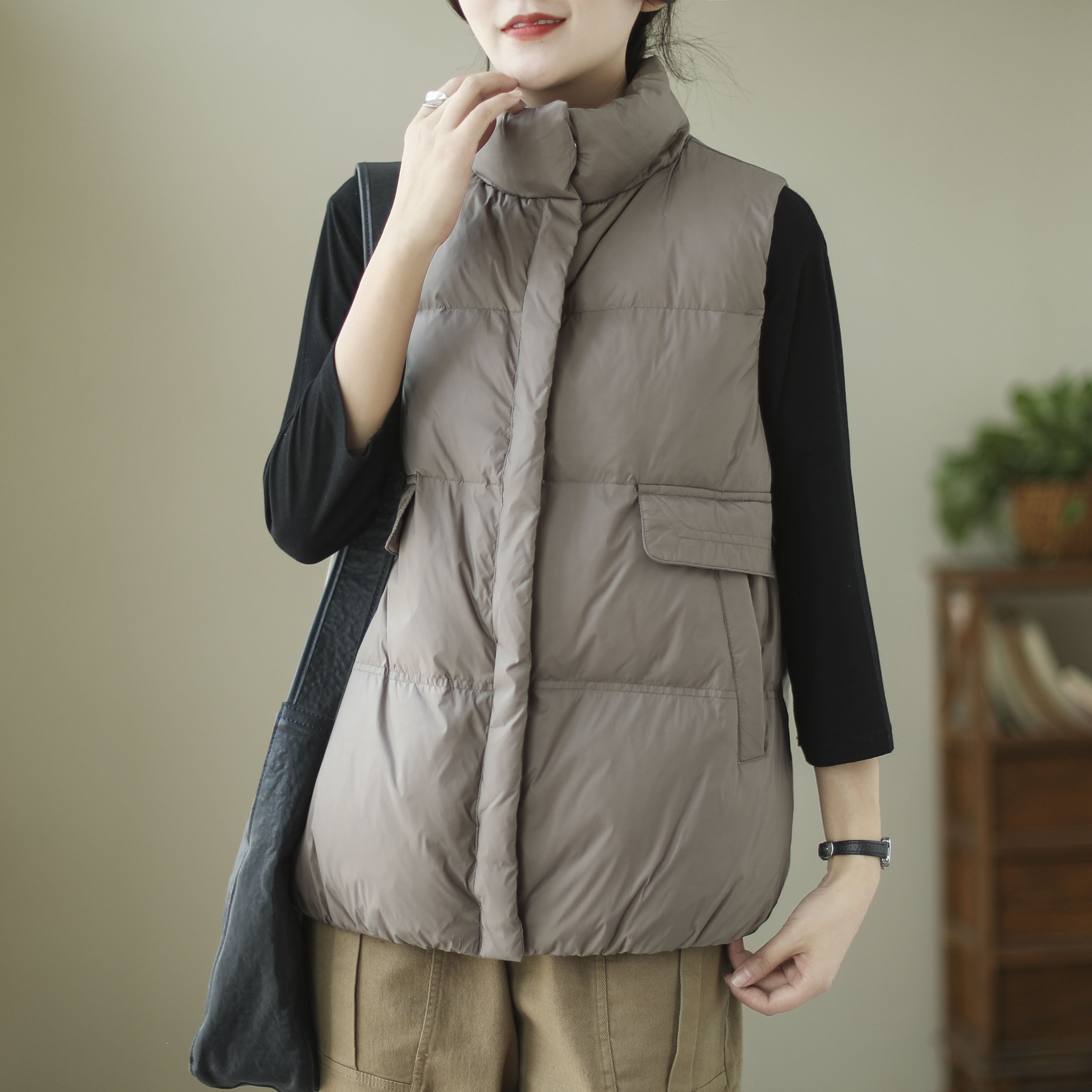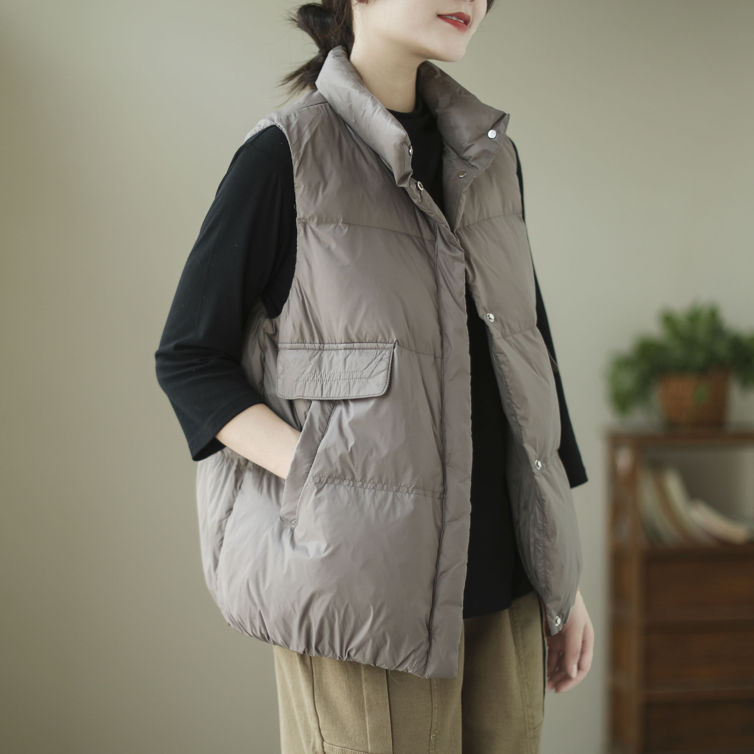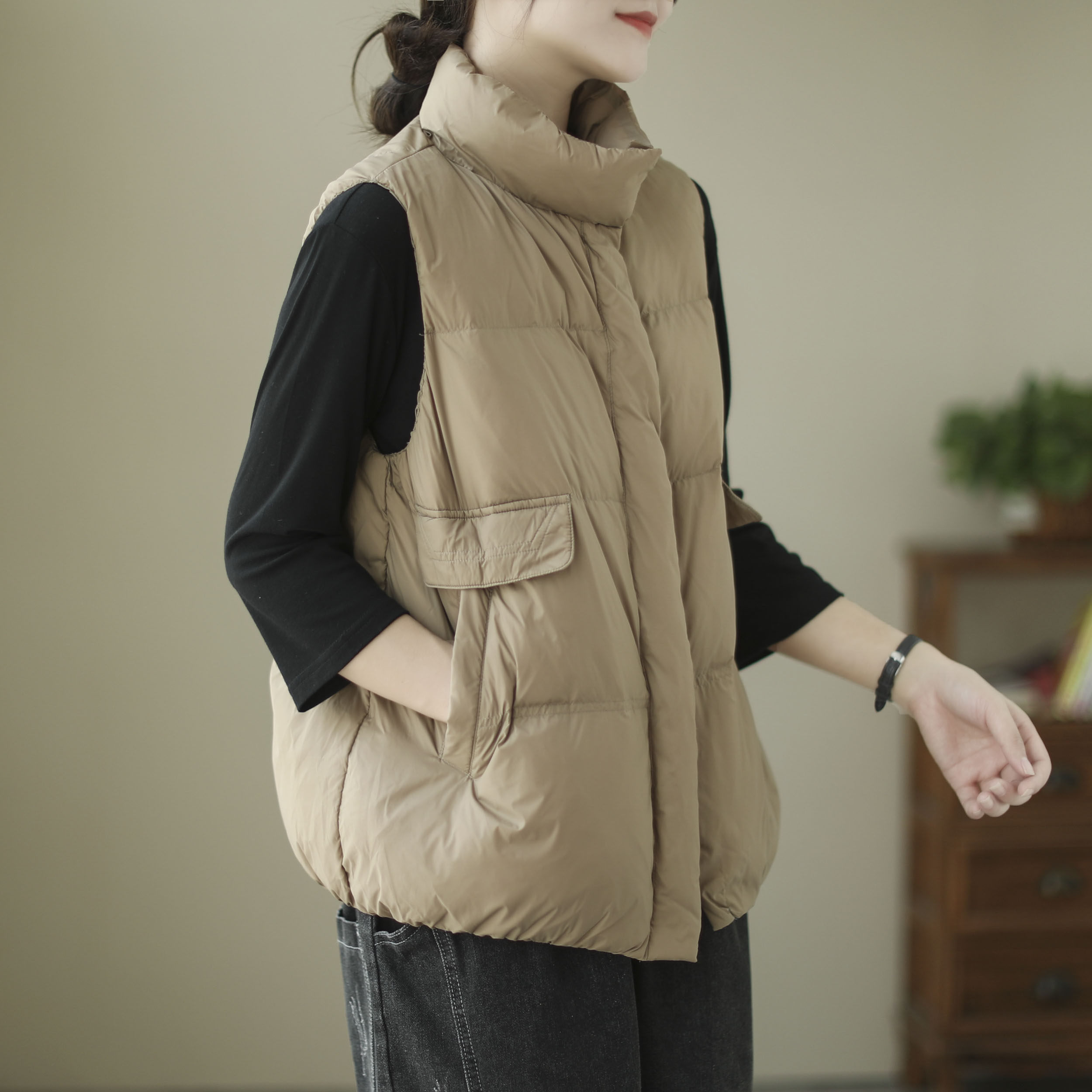 Демисезонный короткий жилет с пухом, легкий и тонкий удерживающий тепло пуховик без рукавов, свободный крой, утиный пух