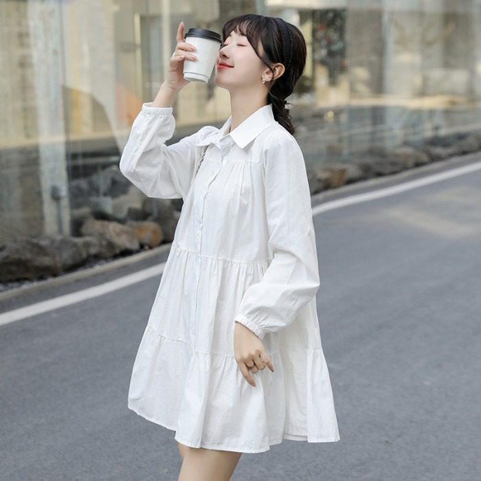 Осеннее белое платье, дизайнерский лонгслив, рубашка, свободный крой, тренд сезона, А-силуэт