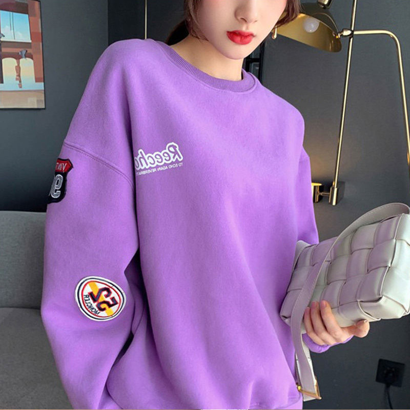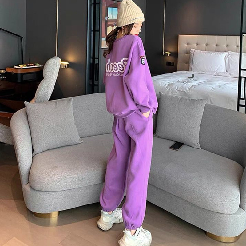 Сиреневый осенний модный спортивный костюм для отдыха, утепленная толстовка с круглым воротником, комплект