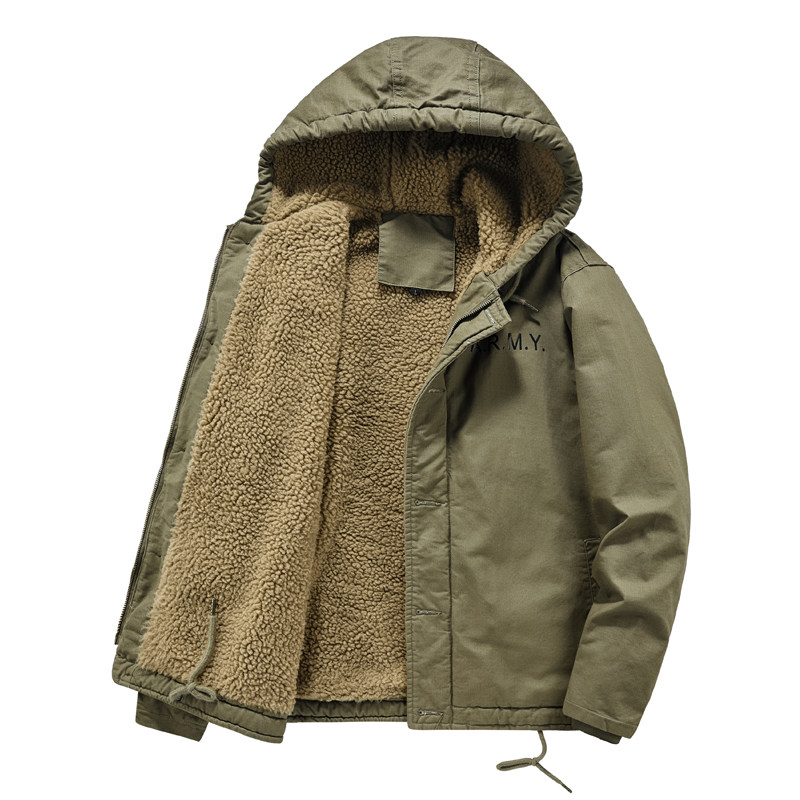 Ретро военно-морская флисовая куртка, бархатный пуховик с капюшоном, в американском стиле, увеличенная толщина