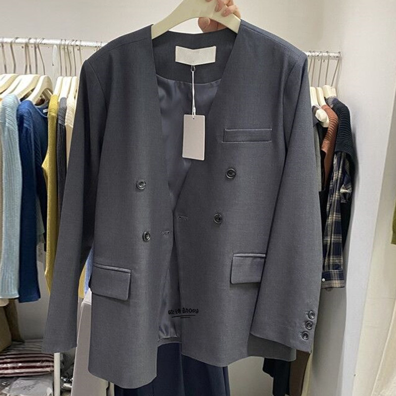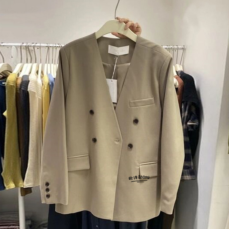 Весенний вместительный и большой пиджак классического кроя, в корейском стиле, большой размер, V-образный вырез, изысканный стиль