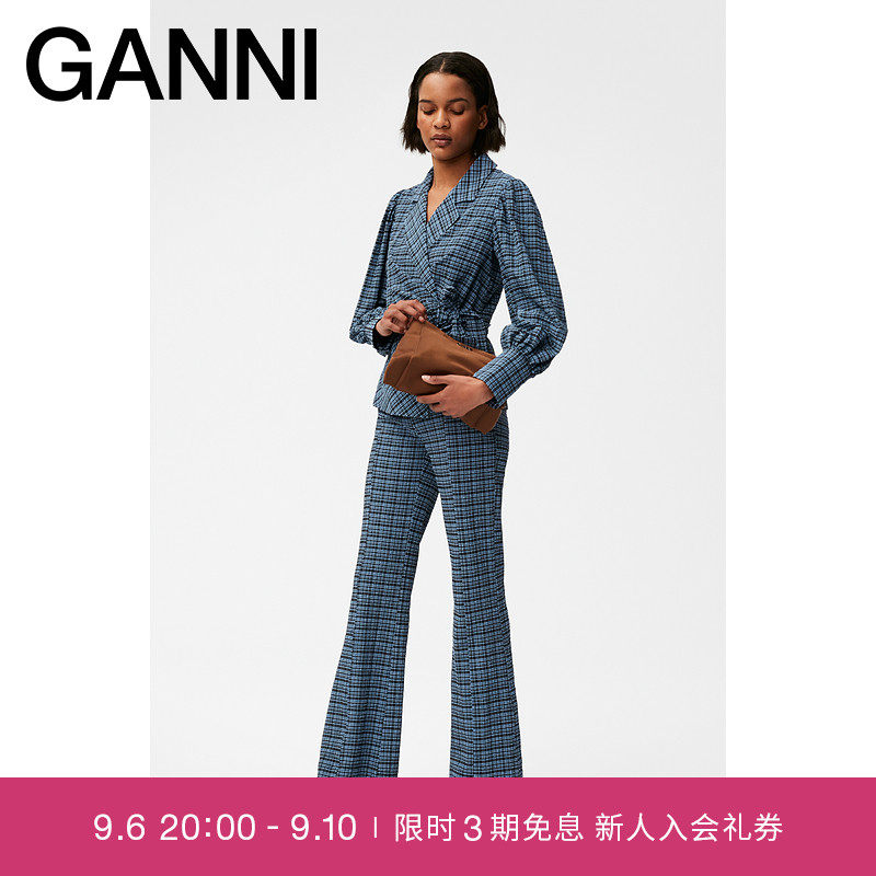 Женская одежда Ganni 2022 Осень Осень Новый Синий Проверенный Высокоэлемент
